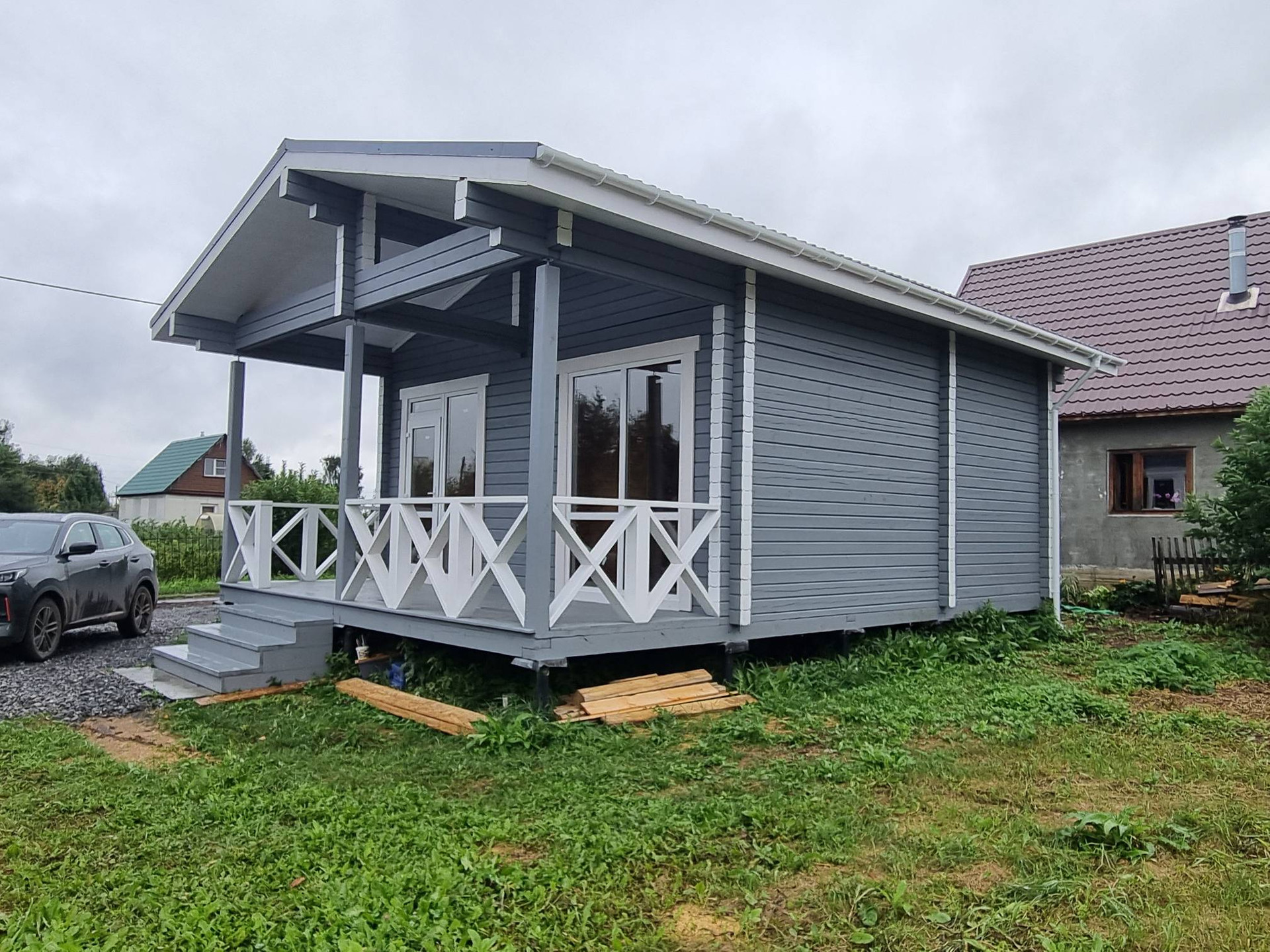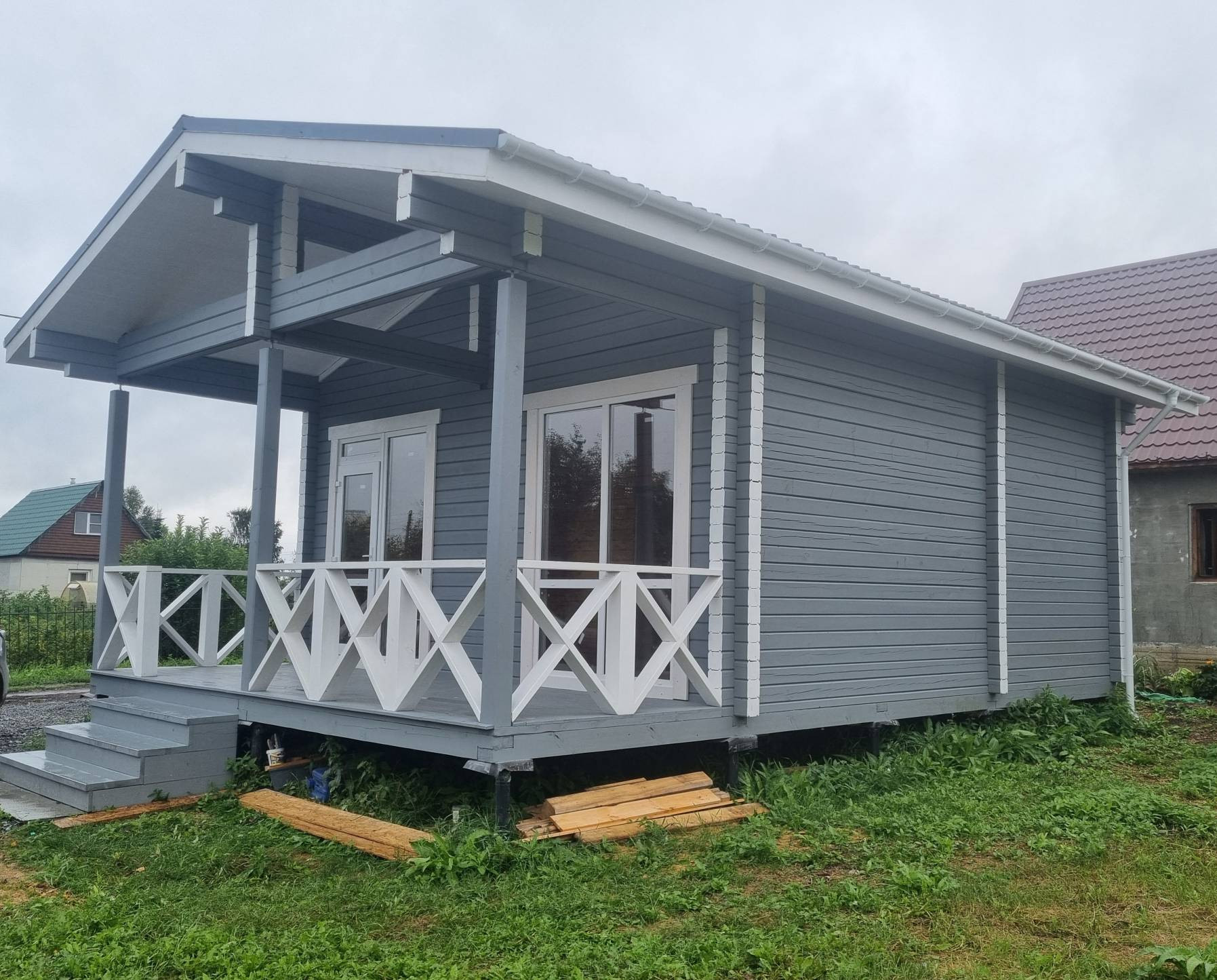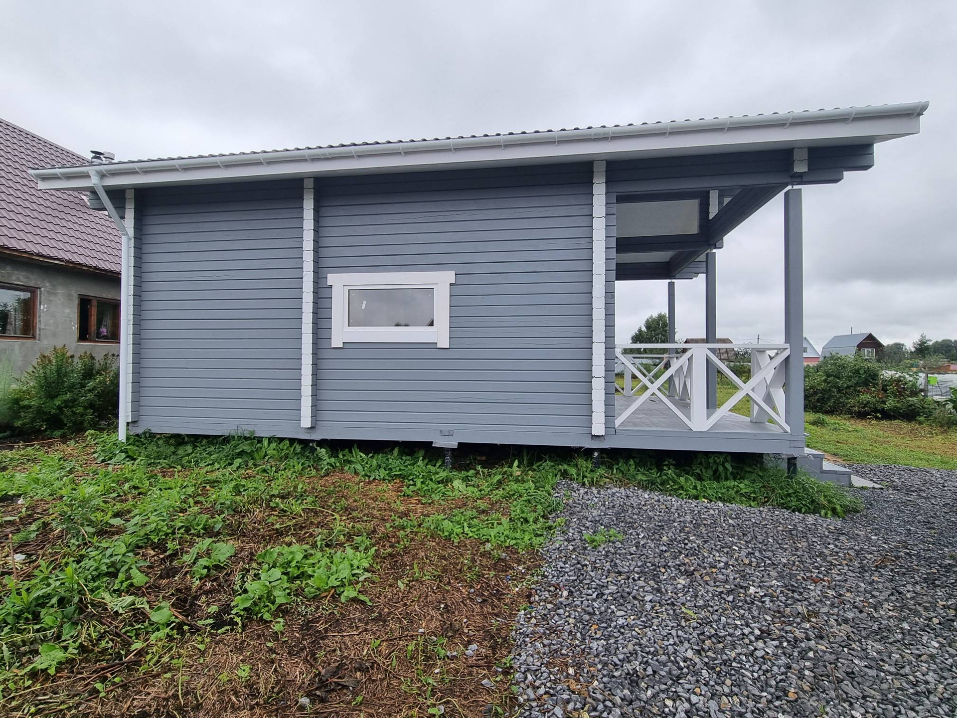 В доме две комнаты + кухня-гостиная общей площадью 36 м², а также веранда площадью 12 м².