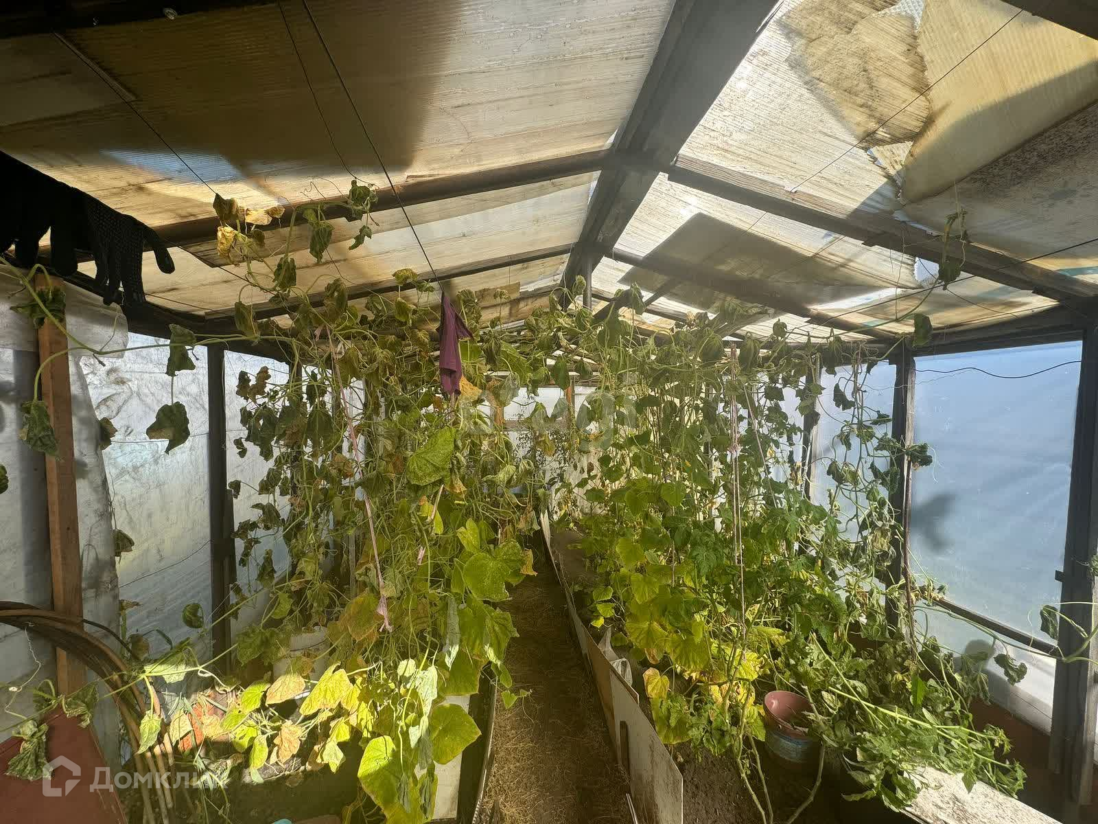 На участке имеется яблоня, вишня, малина, долголетние цветы, в теплице помидоры и огурцы!