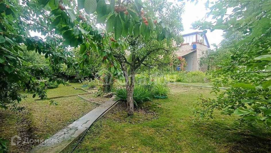 На участке растёт много плодоносящих деревьев и растений: