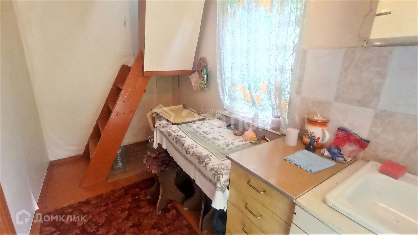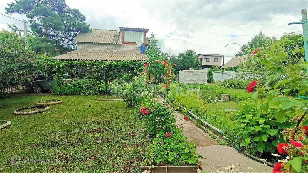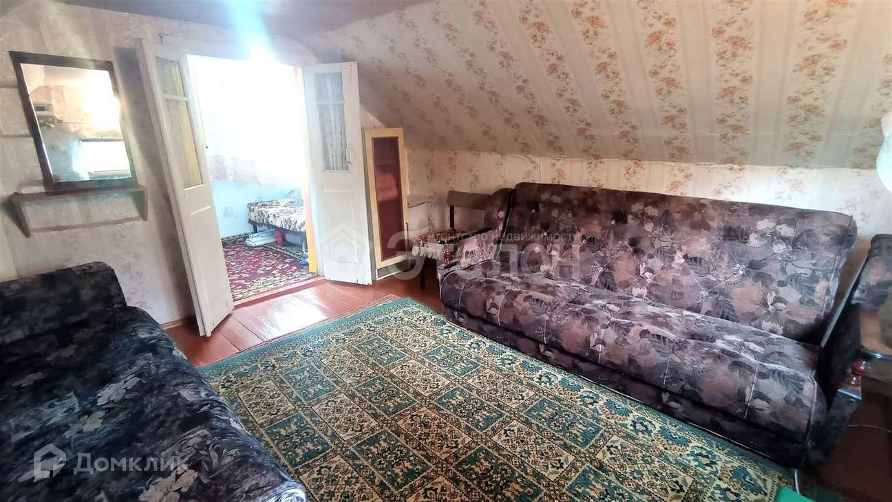 На первом этаже небольшая кухня и комната, на втором этаже две комнаты. На участке хозпостройки, душ, туалет, теплица.