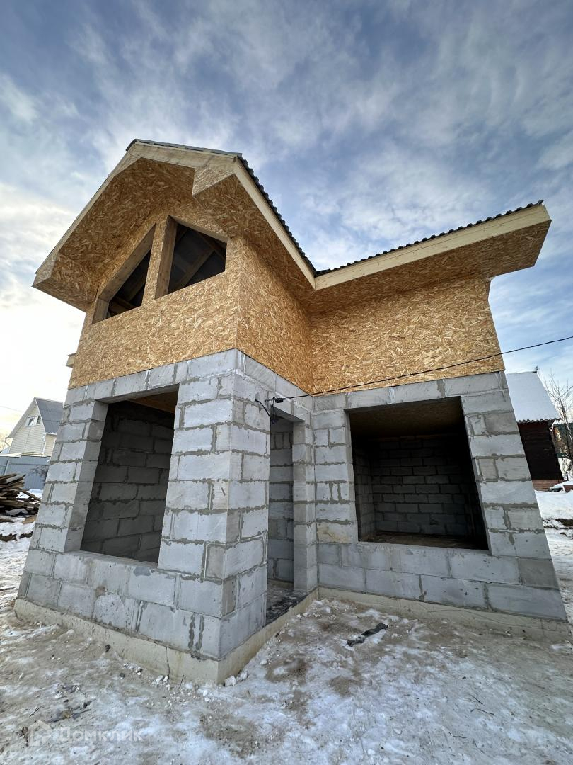 Двухэтажный дом площадью 100 квадратных метров имеет интересную архитектуру: первый этаж выполнен из надежного газобетона, а второй этаж построен с использованием инновационных экспериментальных материалов.