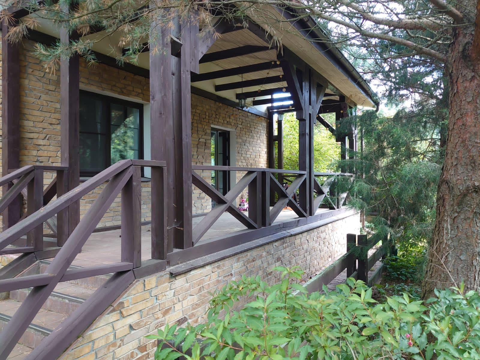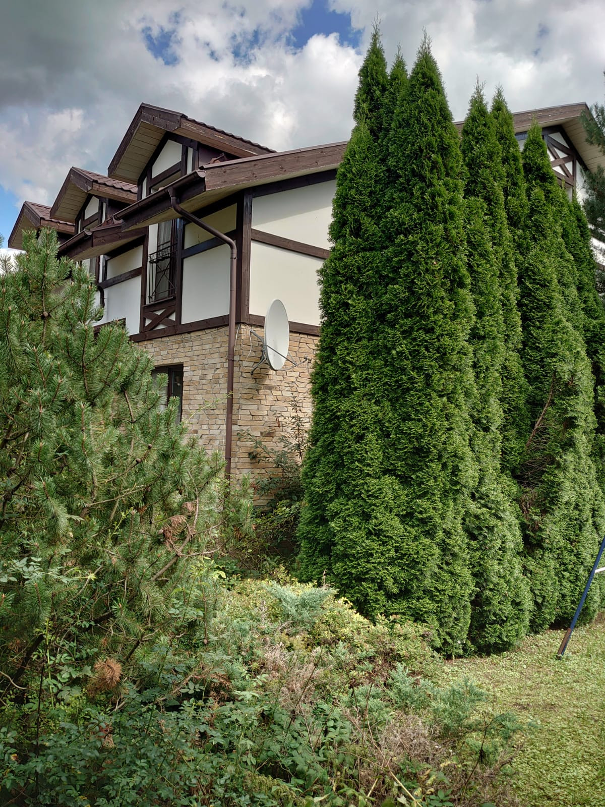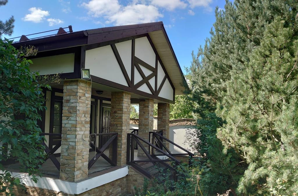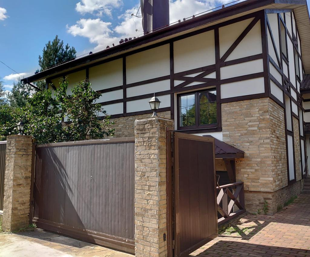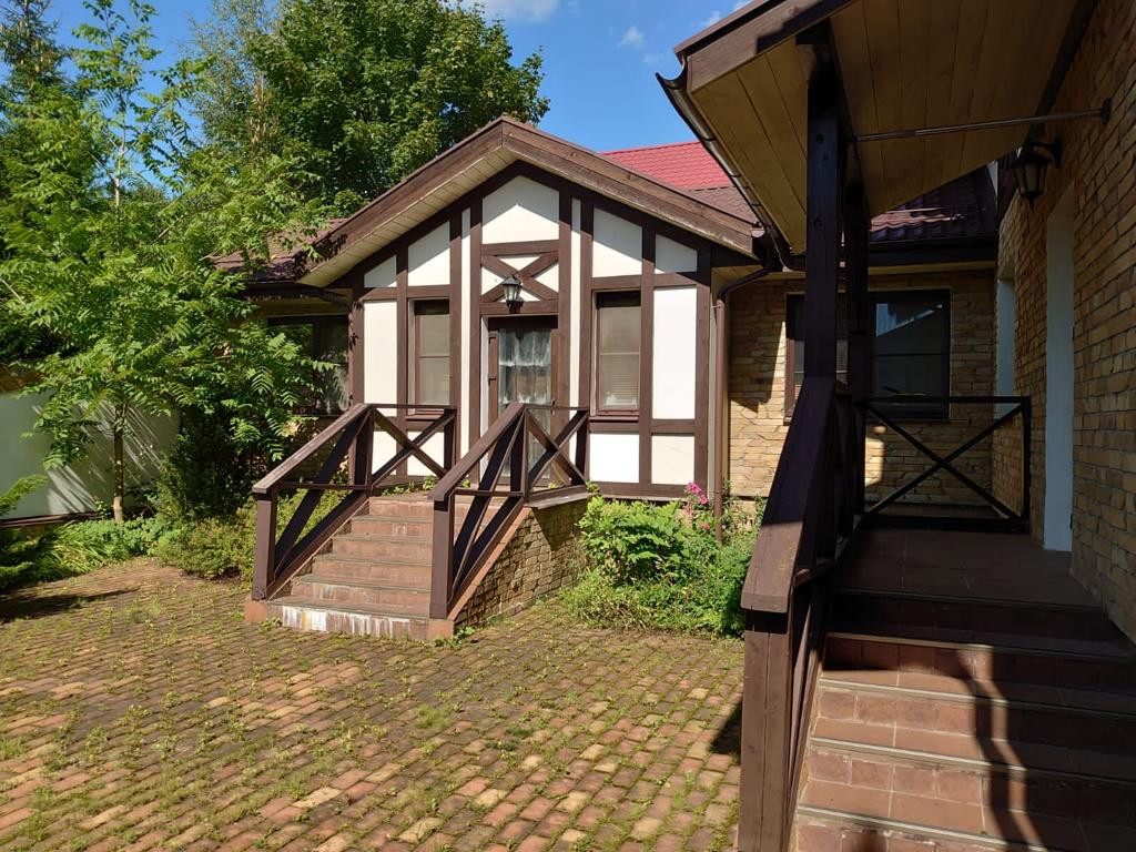 Стильный 2-х этажный коттедж в немецком стиле (фахверк) площадью 430 кв.м. Интересная планировка позволяет использовать помещения в доме как два самостоятельных пространства (каждое имеет свои санузлы, обеденные и кухонные зоны, укомплектованные необходимой  бытовой техникой, спальни, гардеробные, выходы на участок). В доме семь спален, 5 санузлов, детский игровой блок (включает игровую комнату и примыкающие к ней спальню и санузел). На первом этаже с видовыми окнами в сад оборудован бассейн, также имеются два свободных помещения в которых возможно оборудовать кабинет/тренажерный зал/бильярд/игровая и т.п.).  В подвальном этаже  расположены постирочная комната с хозяйственным отсеком, подсобная комната и техническая комната (размещено тех. оборудование).  В доме имеется подземный гараж (1 машиноместо).