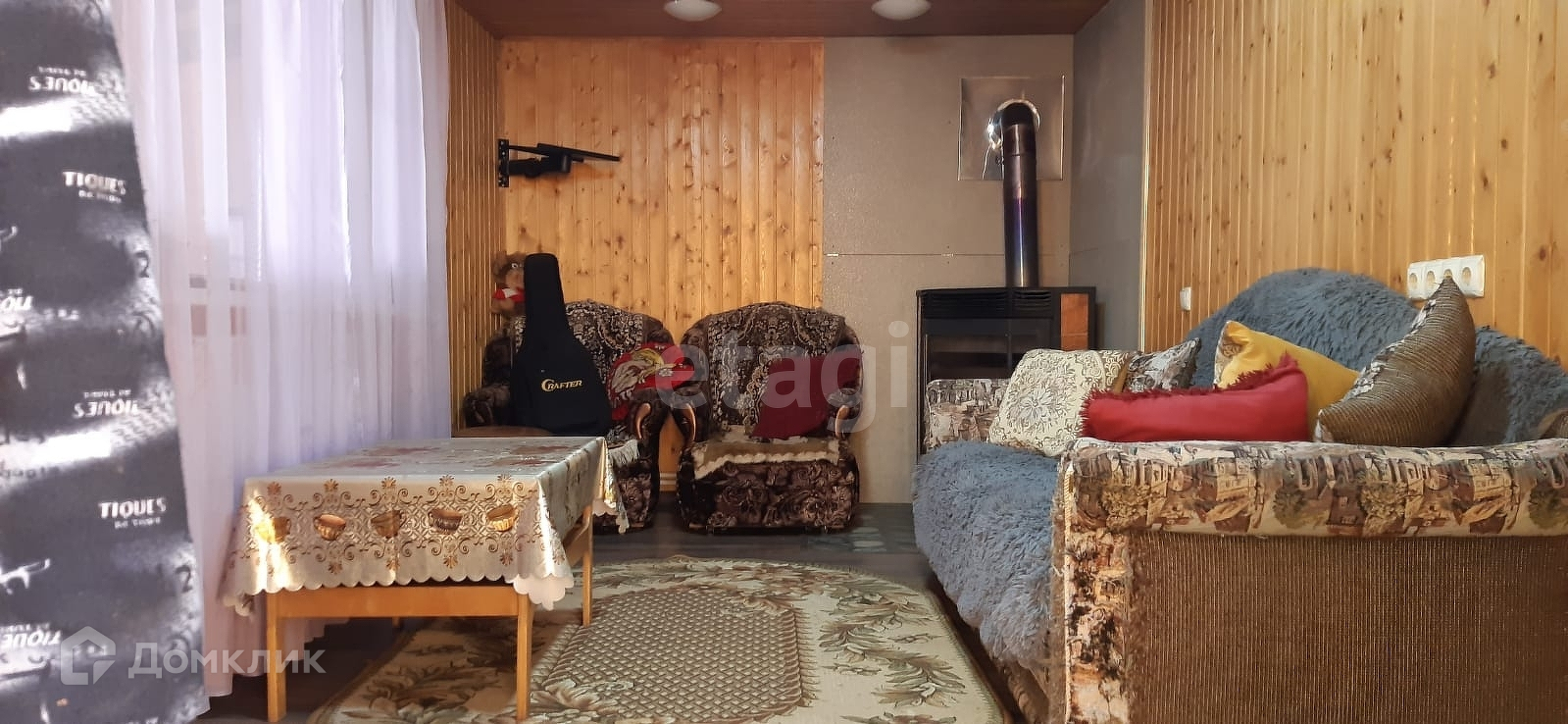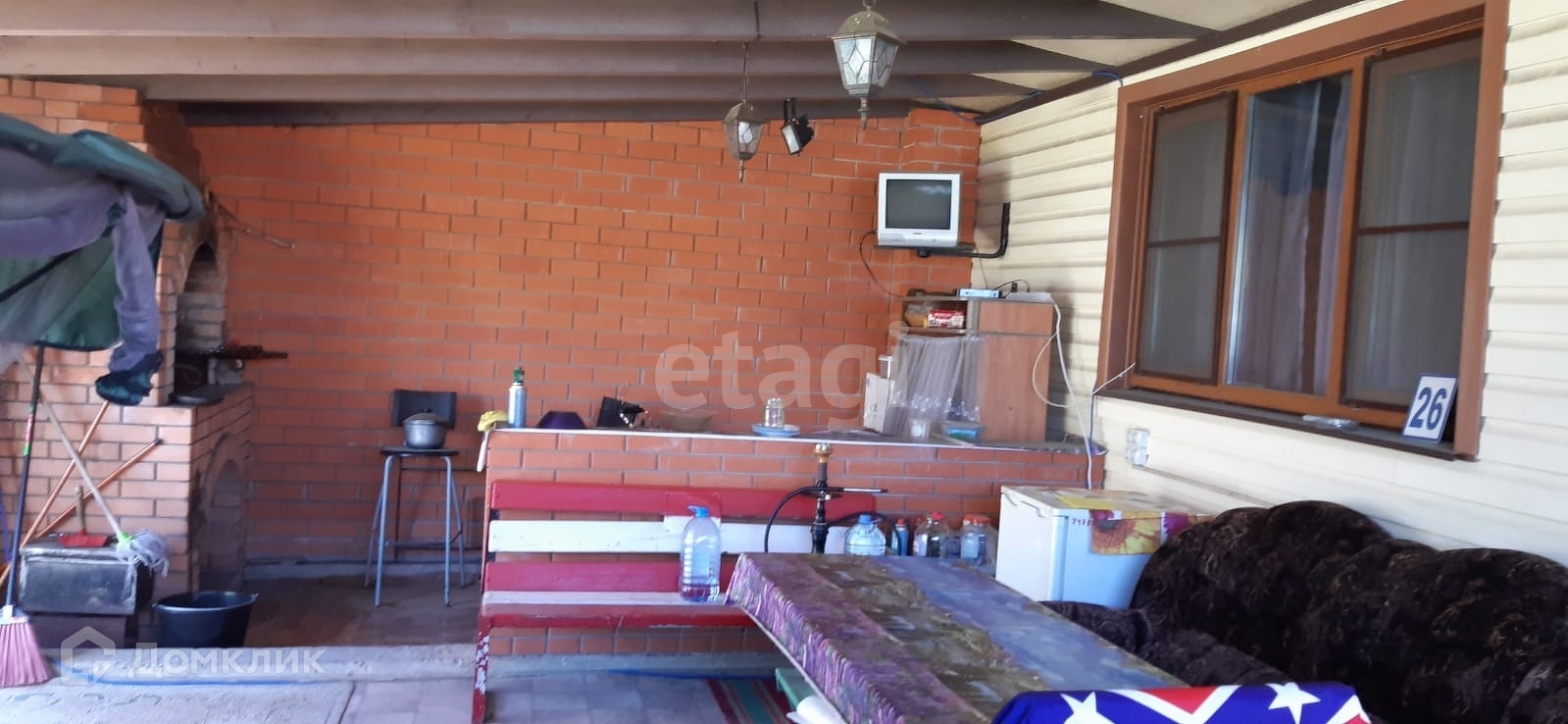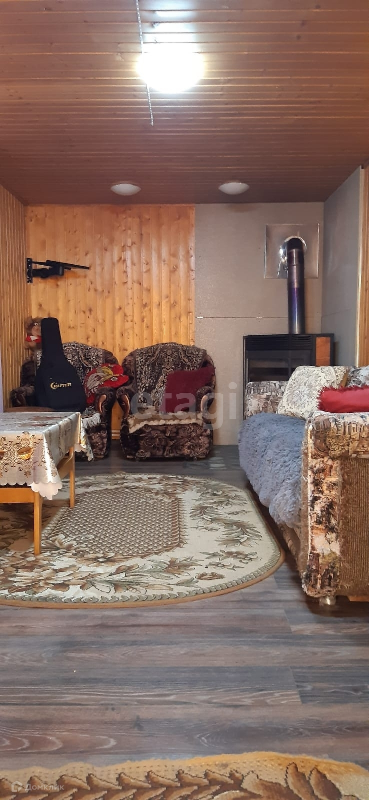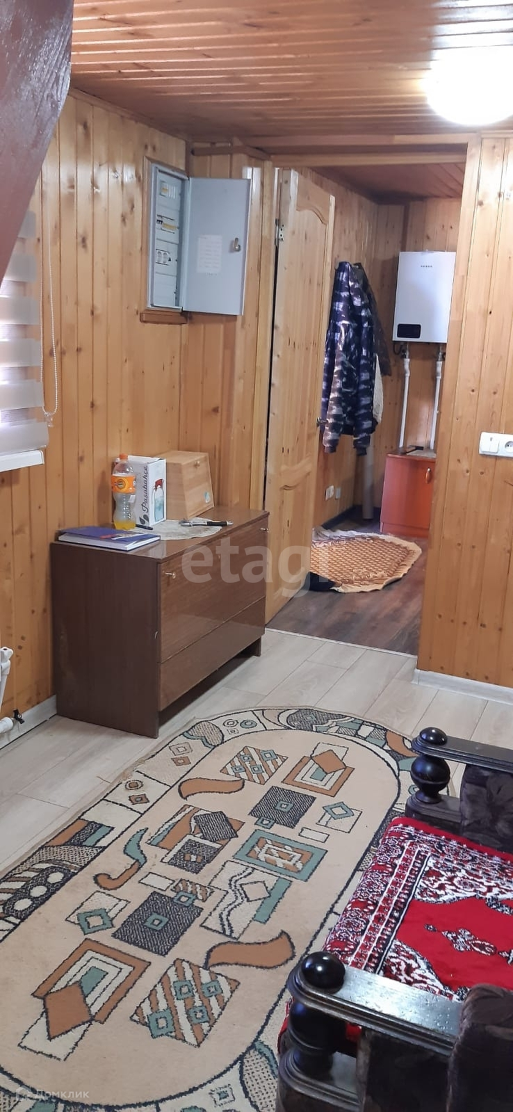 Дом стоит на ленточном фундаменте, стены брус, облицовка сайдинг. С/у на улице, но выкопан колодец под септик на участке. Вода - колодец, 11 колец, в дом не заведена. Отопление электрическое, разведено по дому, также есть дровяной камин для тепла и уюта.