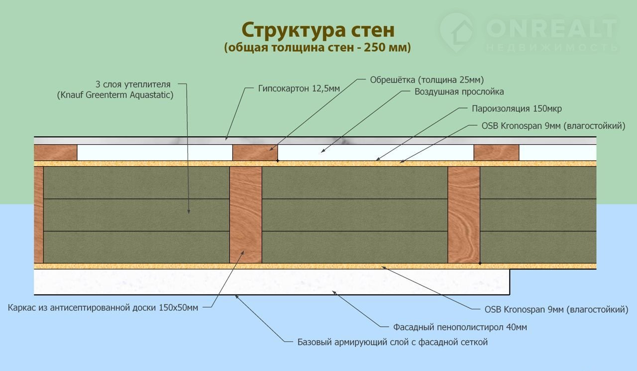 Стены дома общей толщиной 25 см. (эффективное утепление 20 см).