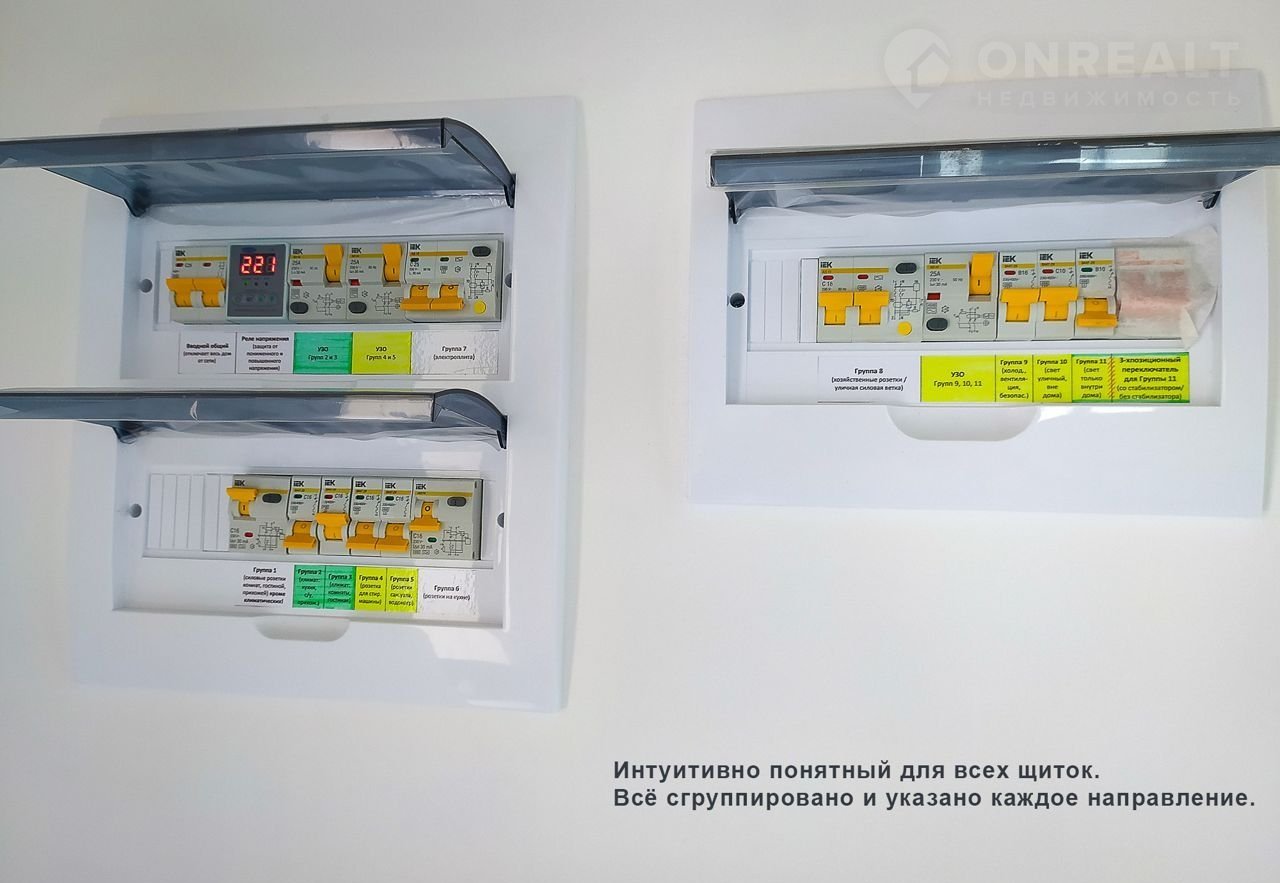 * Возможность использовать только "приоритетную линию" электропитания: низковольтную линию для систем безопасности, питание систем вентиляции, питание холодильника (в кухонной зоне), видеонаблюдения, отключив в щитке все остальные линии электропитания для бОльшей безопасности в период длительного отсутствия.