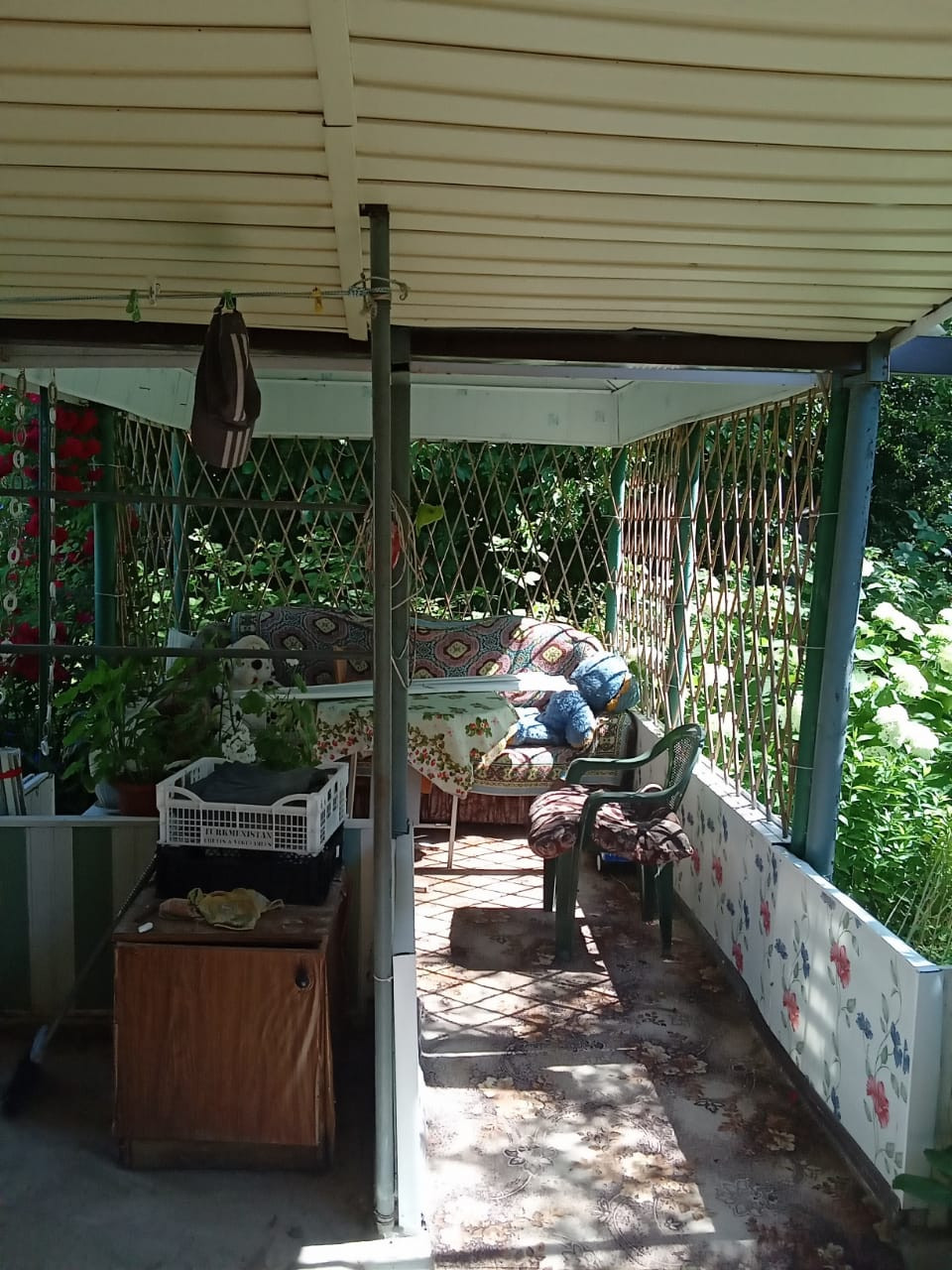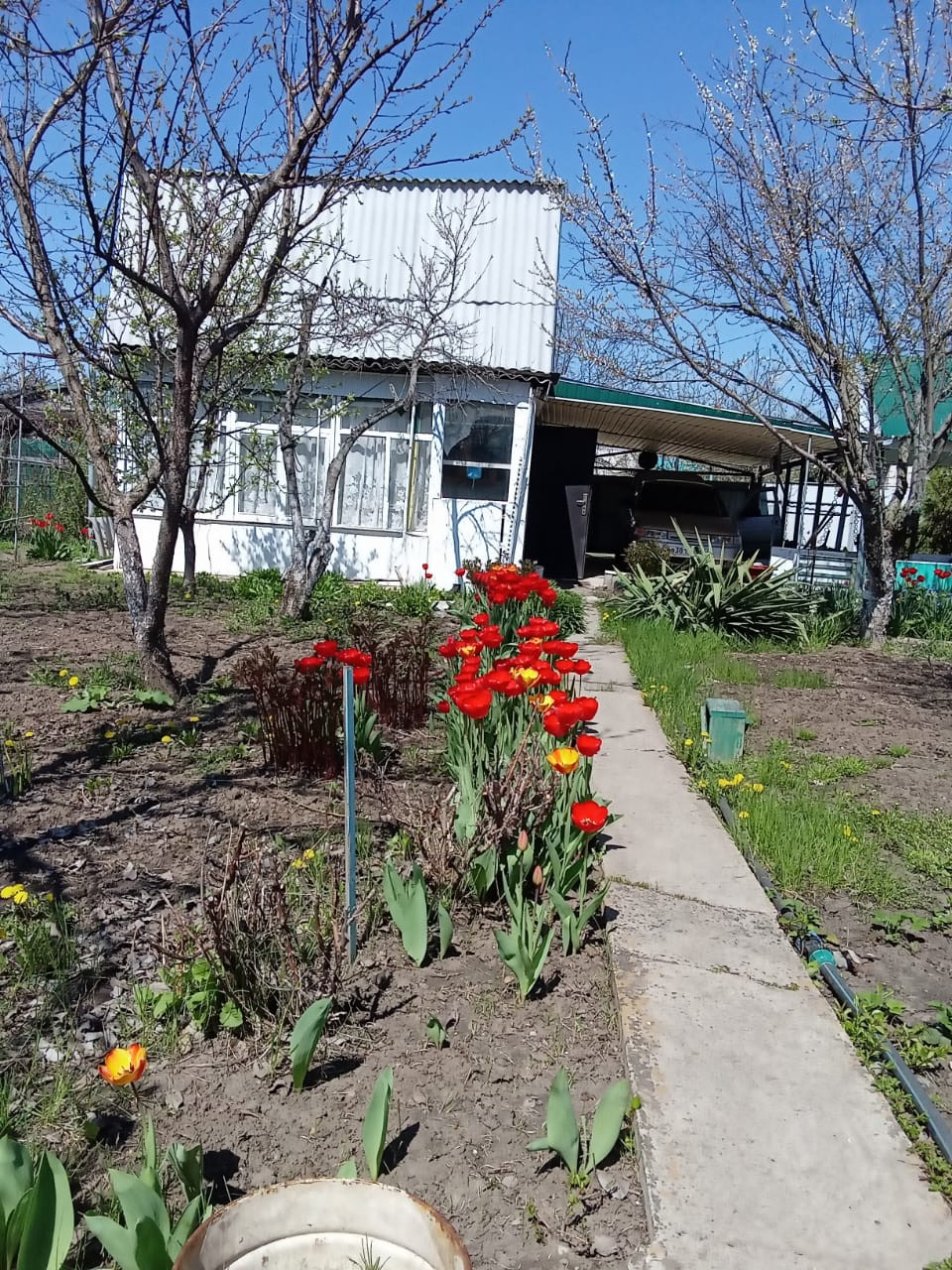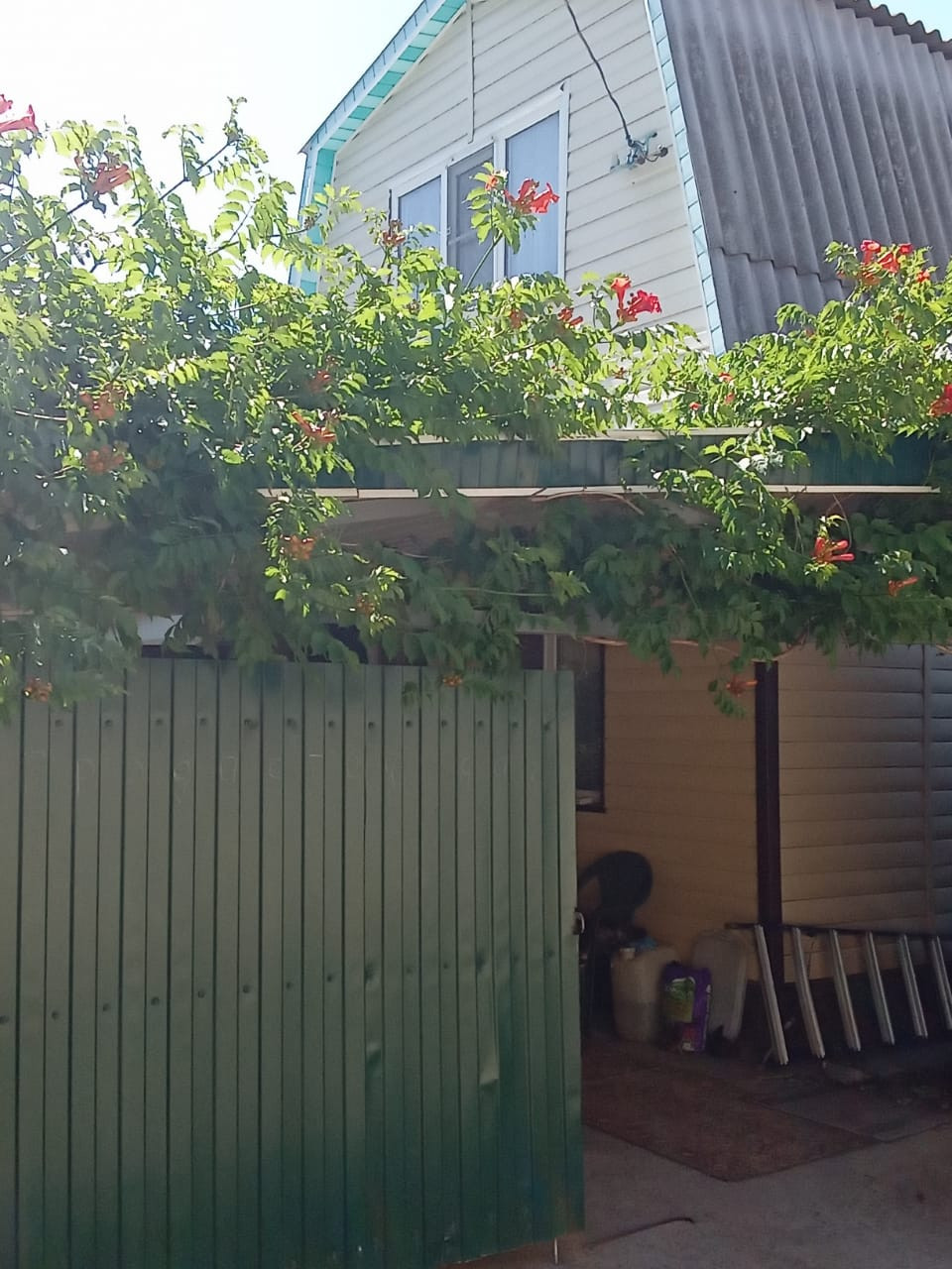 Дом 2х этажный- 60кв.м, стоит на фундаменте, веранда-14кв.м, есть беседка и навес под машину-32 кв.м. Участок и дом приватизированы. В доме на первом этаже расположены комната -16кв.м, коридор 8кв.м и кладовая. На втором этаже: комната-12 кв.м, коридор и две кладовые. В доме остаётся вся мебель: 2 кровати, большой холодильник, газовая плита, кухонный уголок. Свет круглый год. До судоходного канала 3 минуты ходьбы. В перспективе скоро будет газ. Посажена малина, ежевика, смородина, яблони, груша, черешня, абрикос (черный принц, жёлтый).