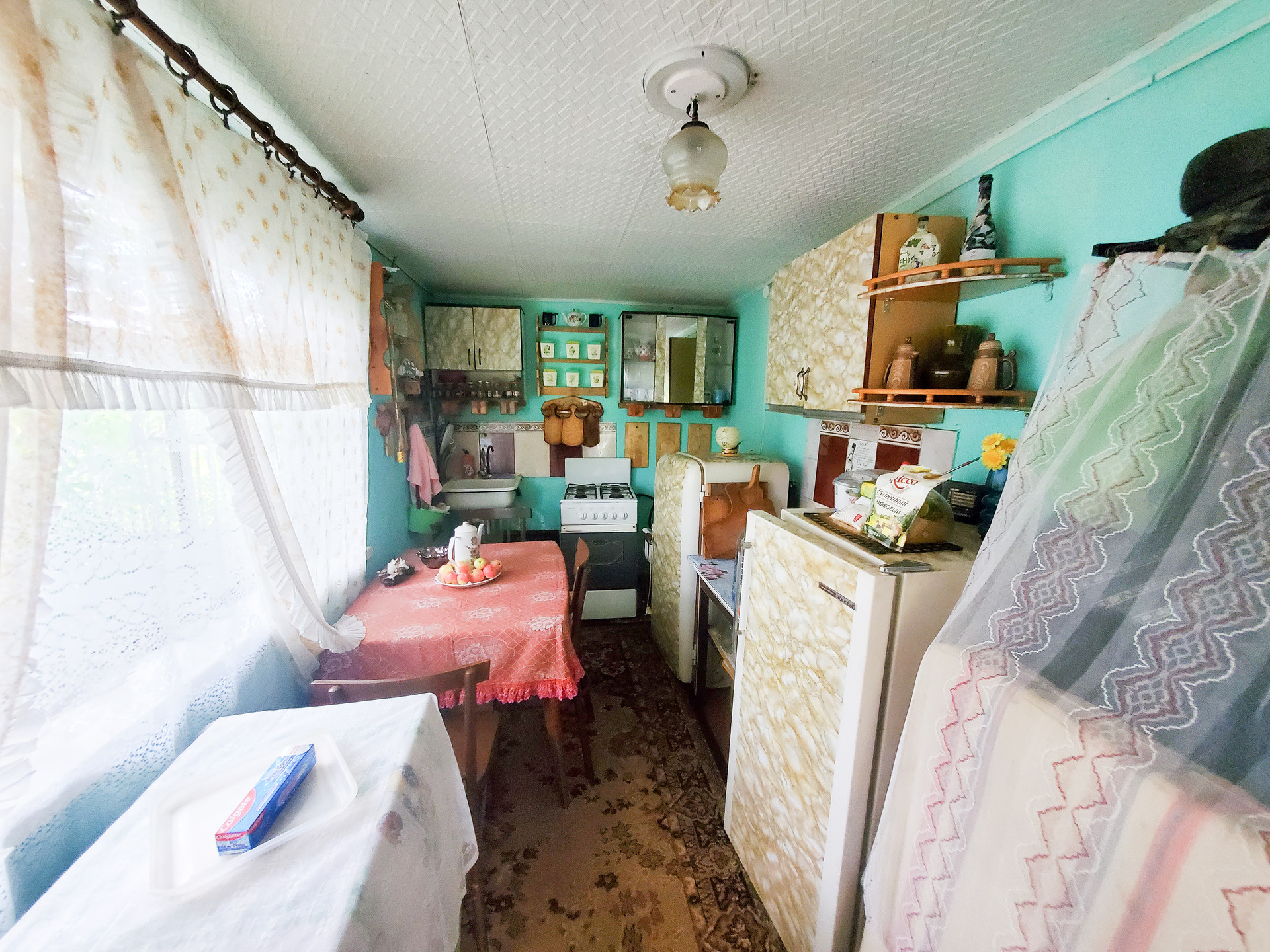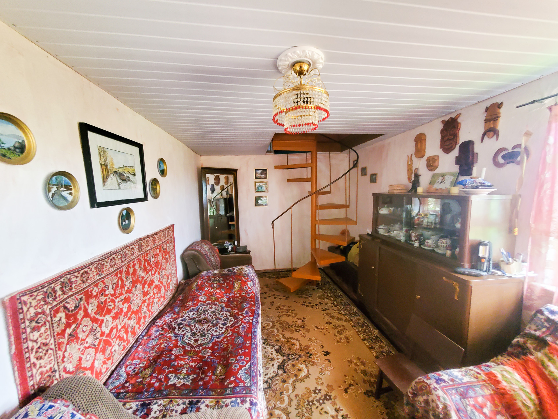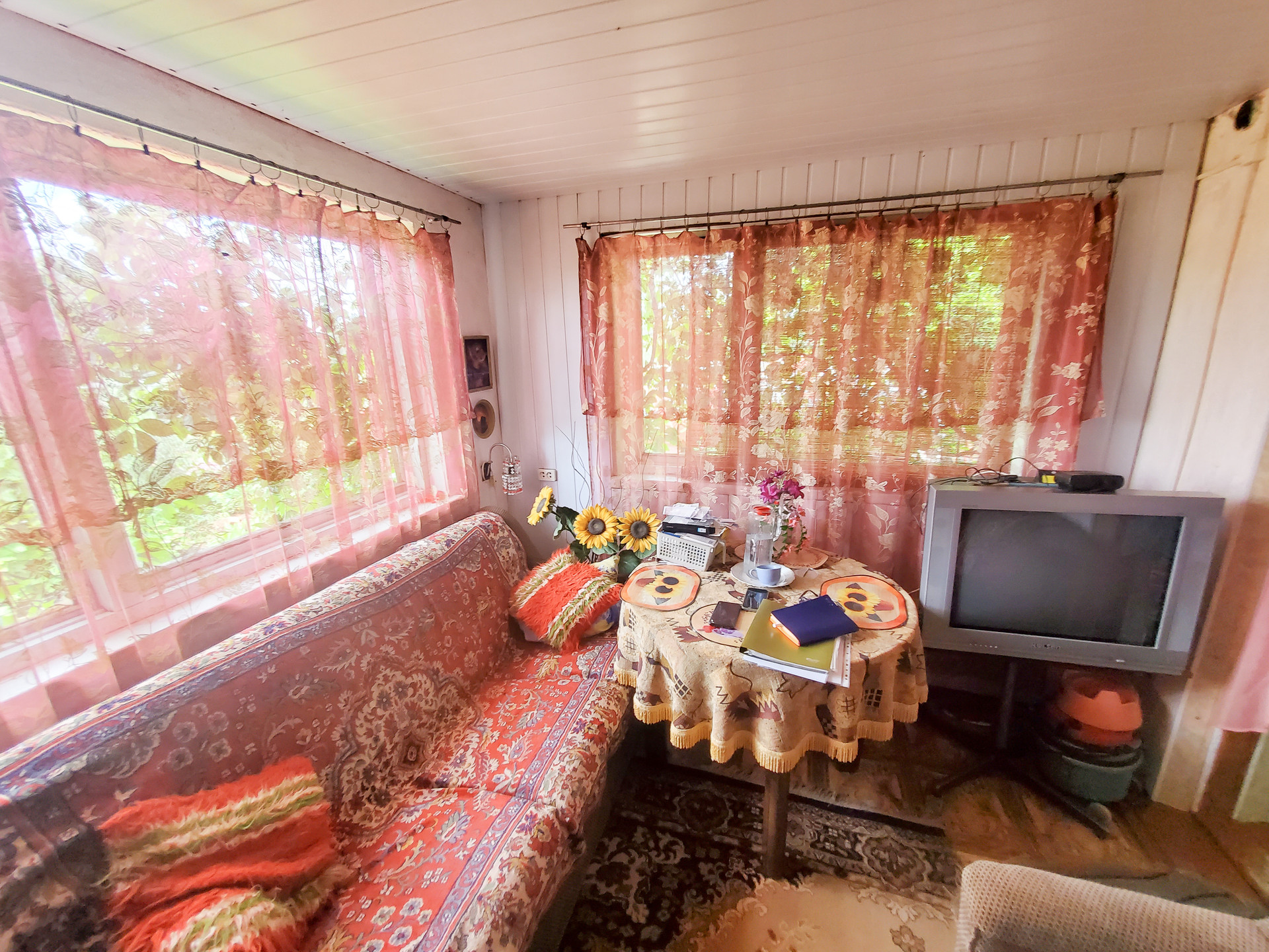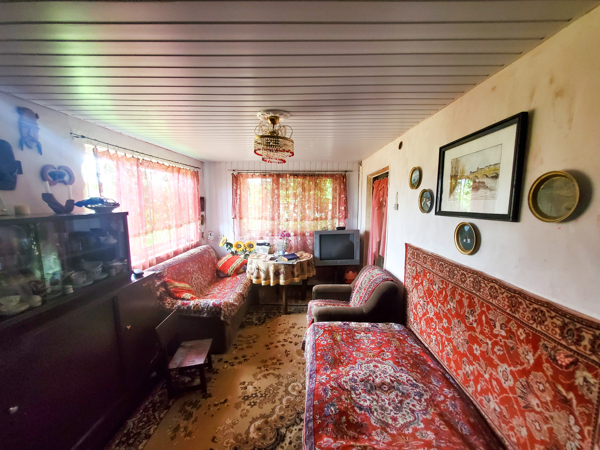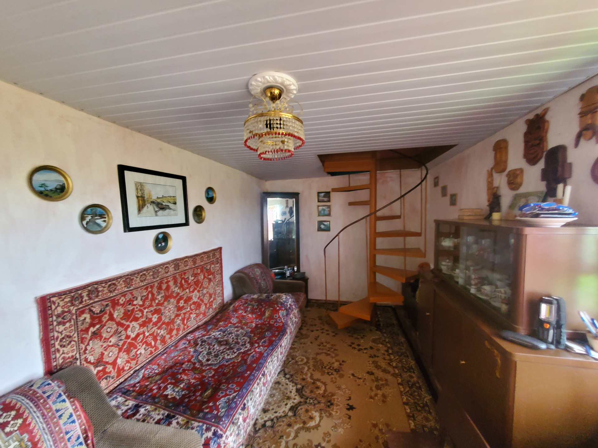 В доме 2 этажа, 3 комнаты(на первом этаже кухня, гостинная, на втором этаже спальня), заведена вода и слив. Есть антенна, телевизор. Мебель бонусом покупателю.