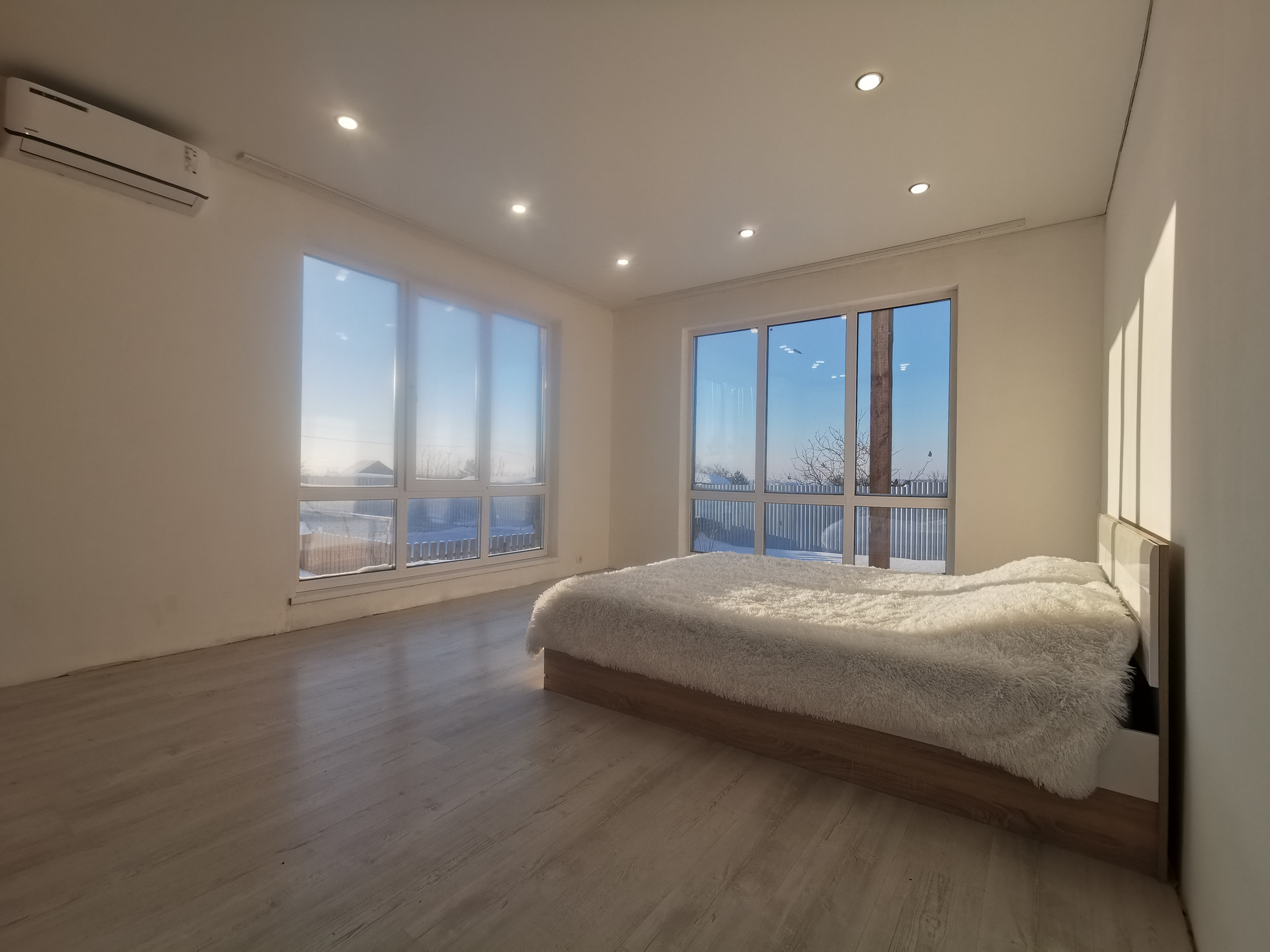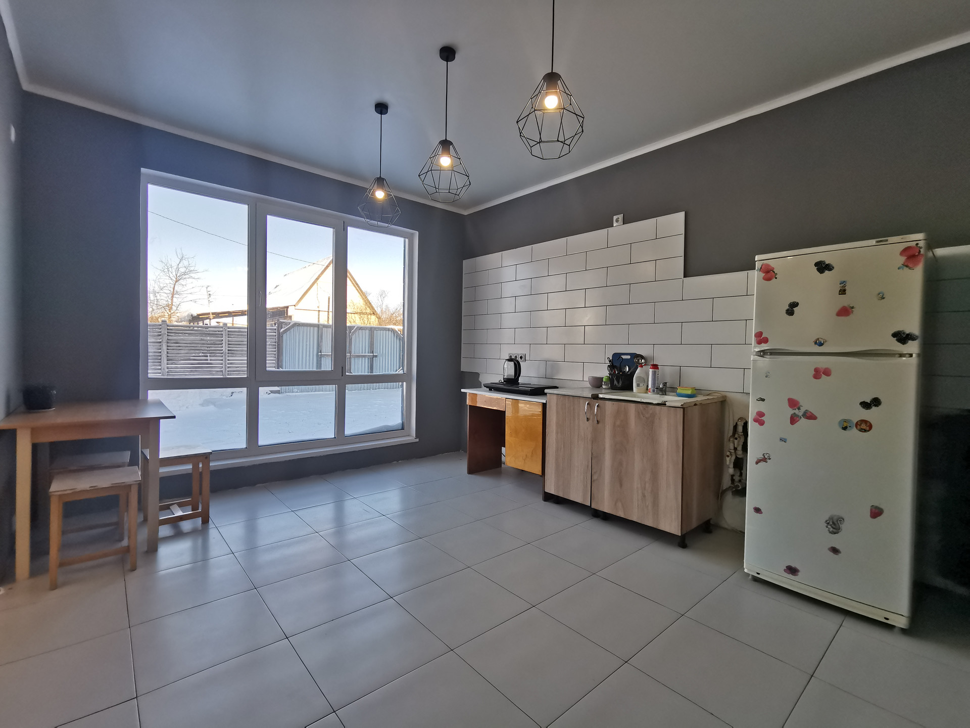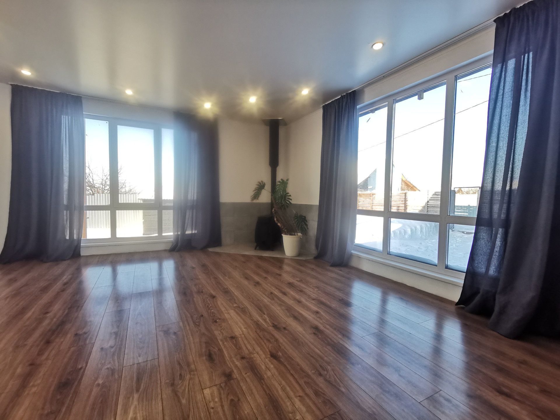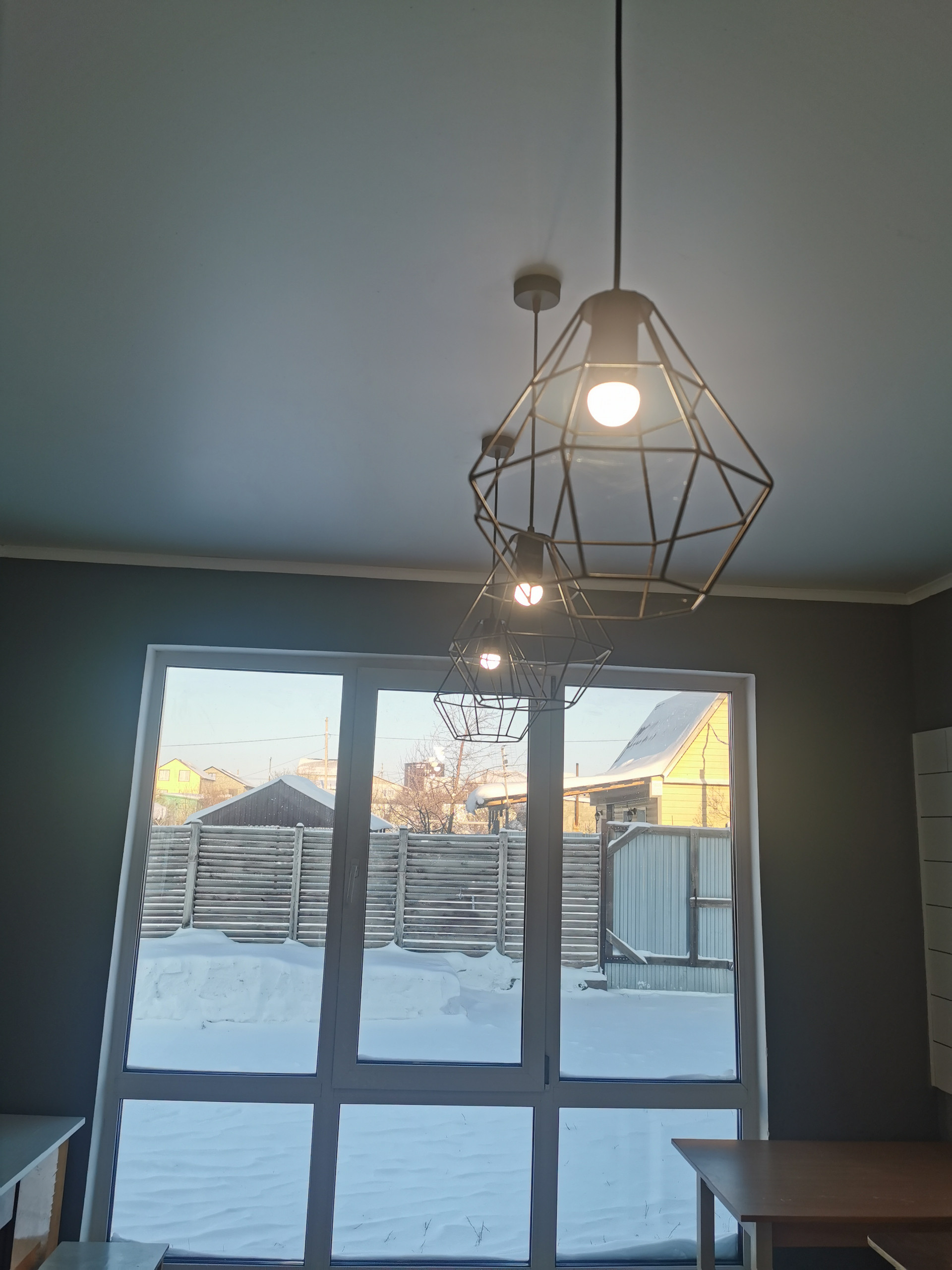 - пластиковое большие панорамные окна фирмы Rеhаu в 3 стекла - не продувает (кто разберается, поймёт);