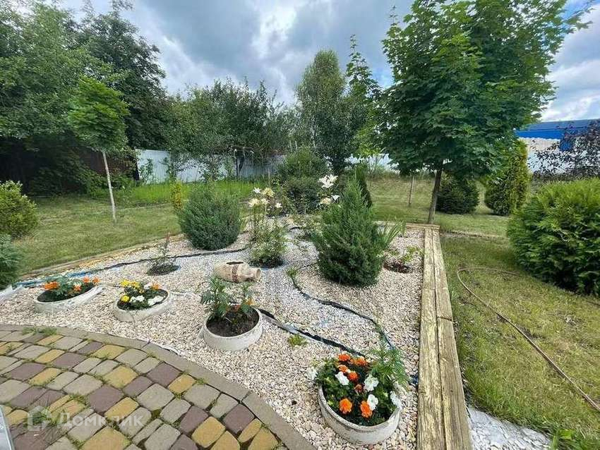 На участке уютный сад с фруктовыми деревьями,туи, фонтан, детская зона, беседка и мангальная зона.