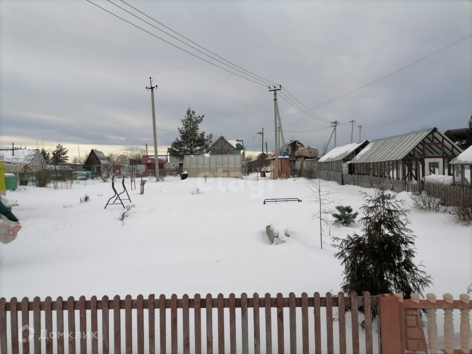 Участок разработан, растут деревья: яблони, груши, сливы. Все растения на участке плодоносят. Есть место для отдыха. Электричество заведено в дом.