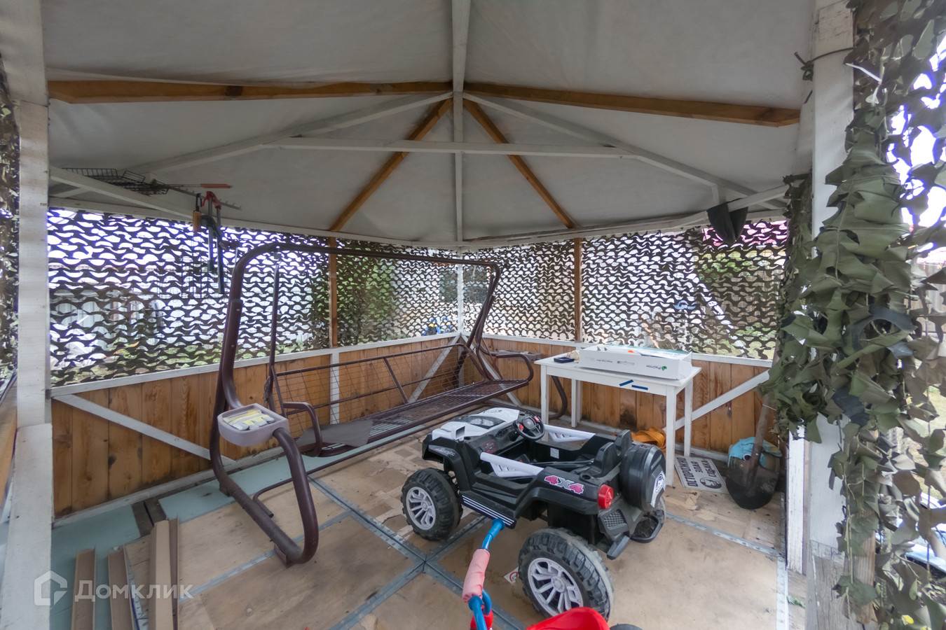 · Участок ровный и правильной формы, на нем размещены крытый гараж с автоматическими воротами, удобная беседка и теплица.