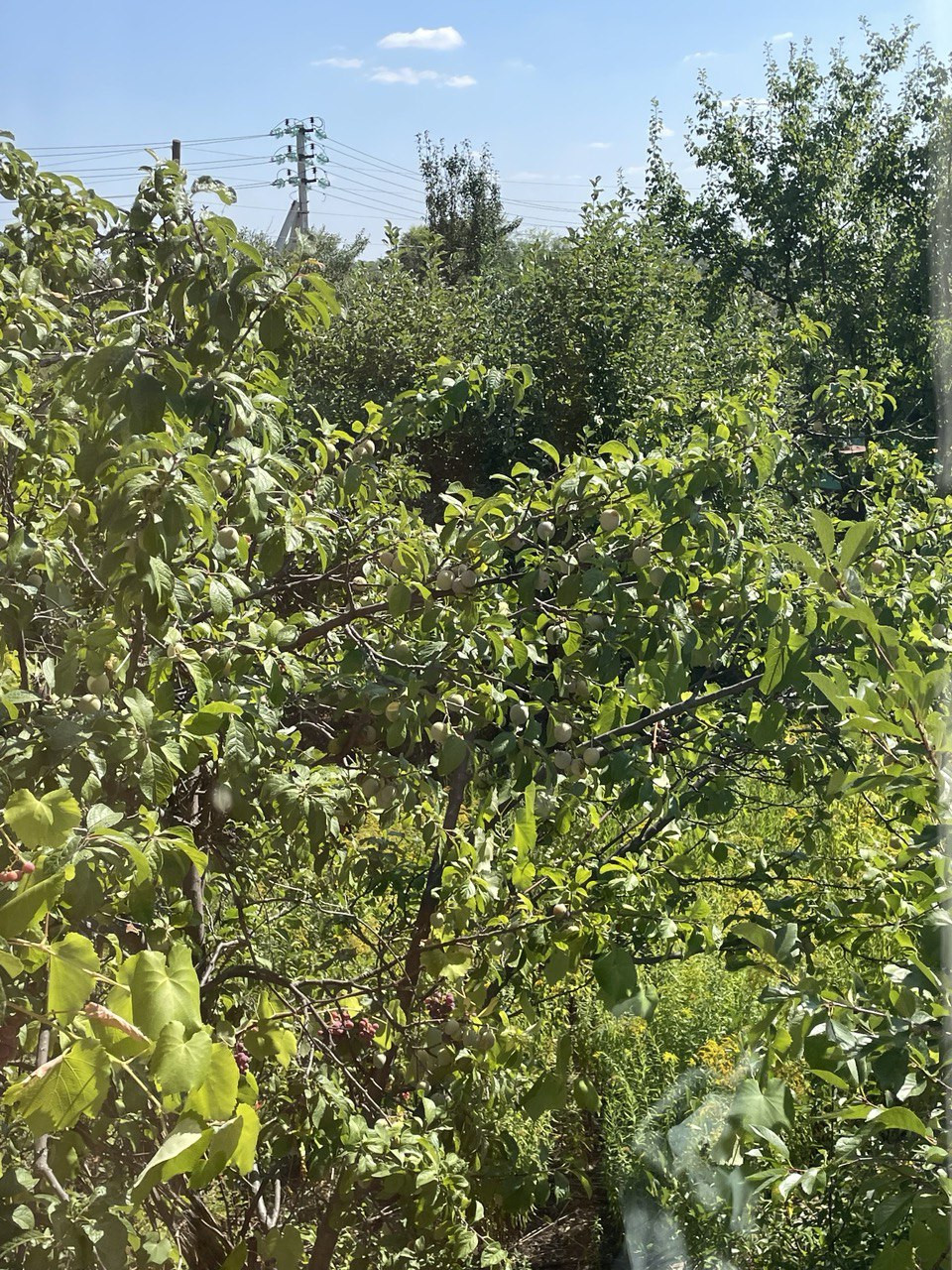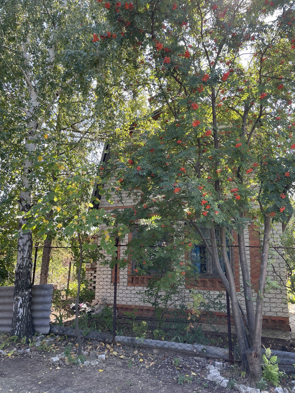 На участке - лиственница, береза, рябина, липа. Из плодовых - абрикосы, слива, груша, три яблони и невероятно вкусный грецкий орех. Кусты черной смородины старой селекции крупной и оч сладкой. Шиповник, облепиха, арония (черноплодная рябина). конечно крыжовник , хеномелес. И лиана винограда Лидия весьма плодовитая