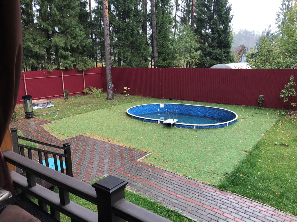 Дом расположен на земельном участке площадью 8,6 соток, разрешенное использование: для садоводства, полностью благоустроен, ухожен. На участке растут разные деревья: ели, сосны, плодовые деревья, газон, имеется бассейн, оборудована детская игровая зона, зона для барбекю, стоянка для автомобилей и дорожки вымощены тротуарной плиткой.