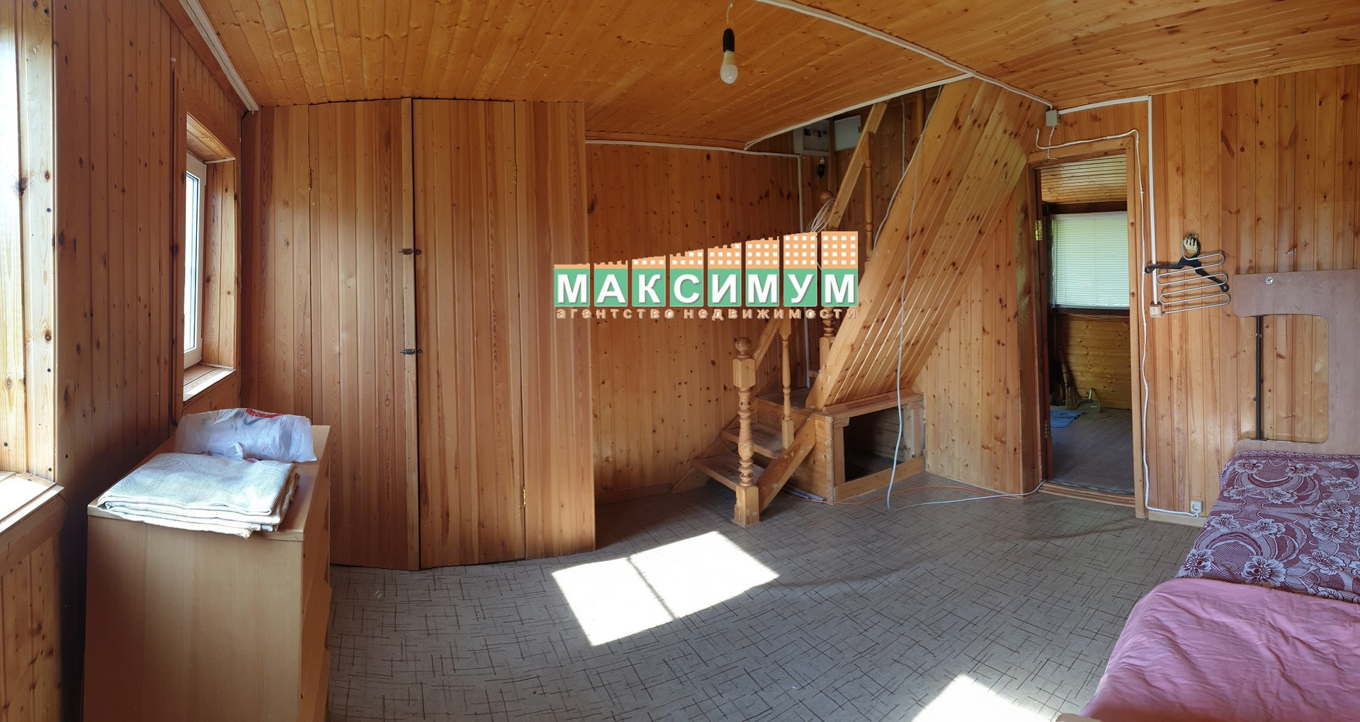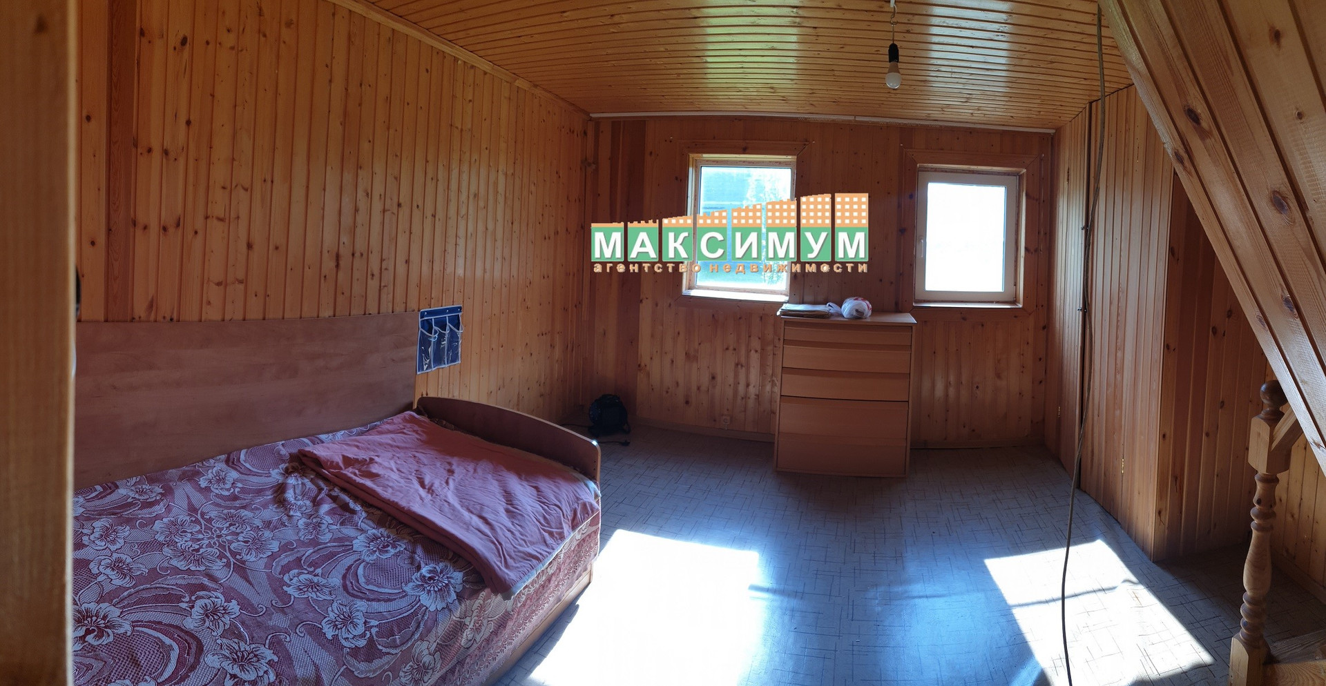 - Первый дом бревенчатый, 2-х этажный, общей площадью около 50 кв.м., основная часть дома стоит на столбчатом фундаменте. Первый этаж: 2 комнаты, веранда, второй этаж мансардный с полноценной комнатой.
