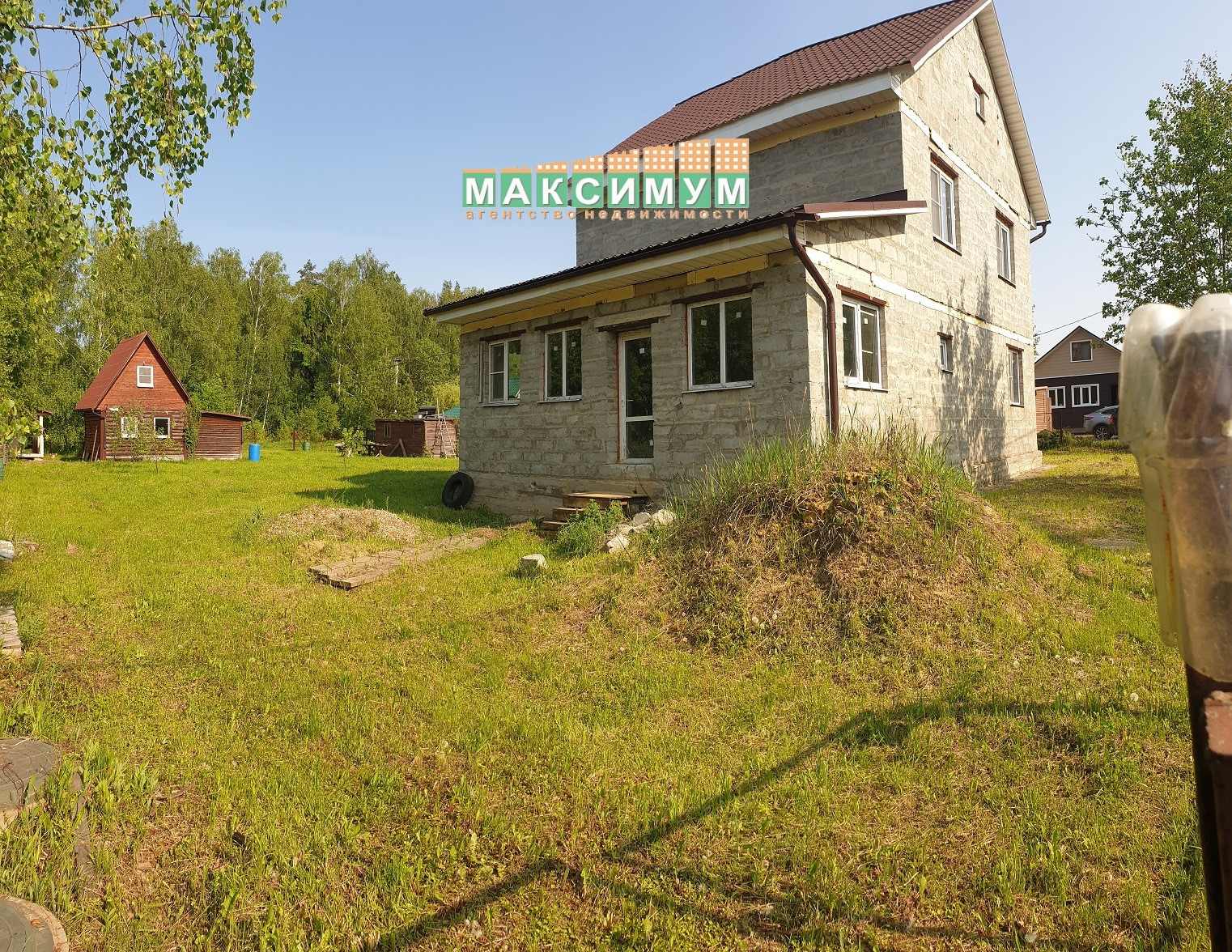 - Второй дом новый с частичной черновой отделкой, 3-х этажный. Фундамент ленточный армированный, стены выведены из газоблока, крыша перекрыт металлочерепицей. Общая площадь дома 145 кв.м., оформлен как нежилой-садовый. На первом этаже дома: кухня-гостиная 35.5 кв.м., с круговой лестницей, совмещенный санузел выведены все коммуникации, комната, веранда. На втором этаже: 4 спальни, холл. Третий этаж чердачный, с возможностью полностью сделать его жилым, высота потолков позволяет.
