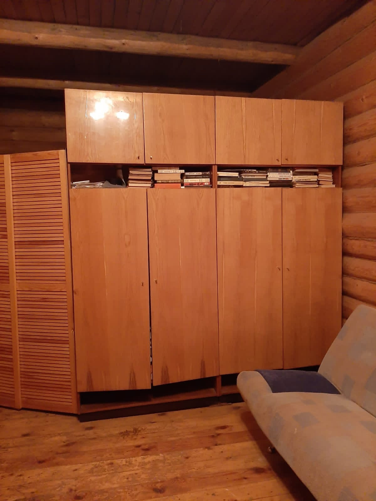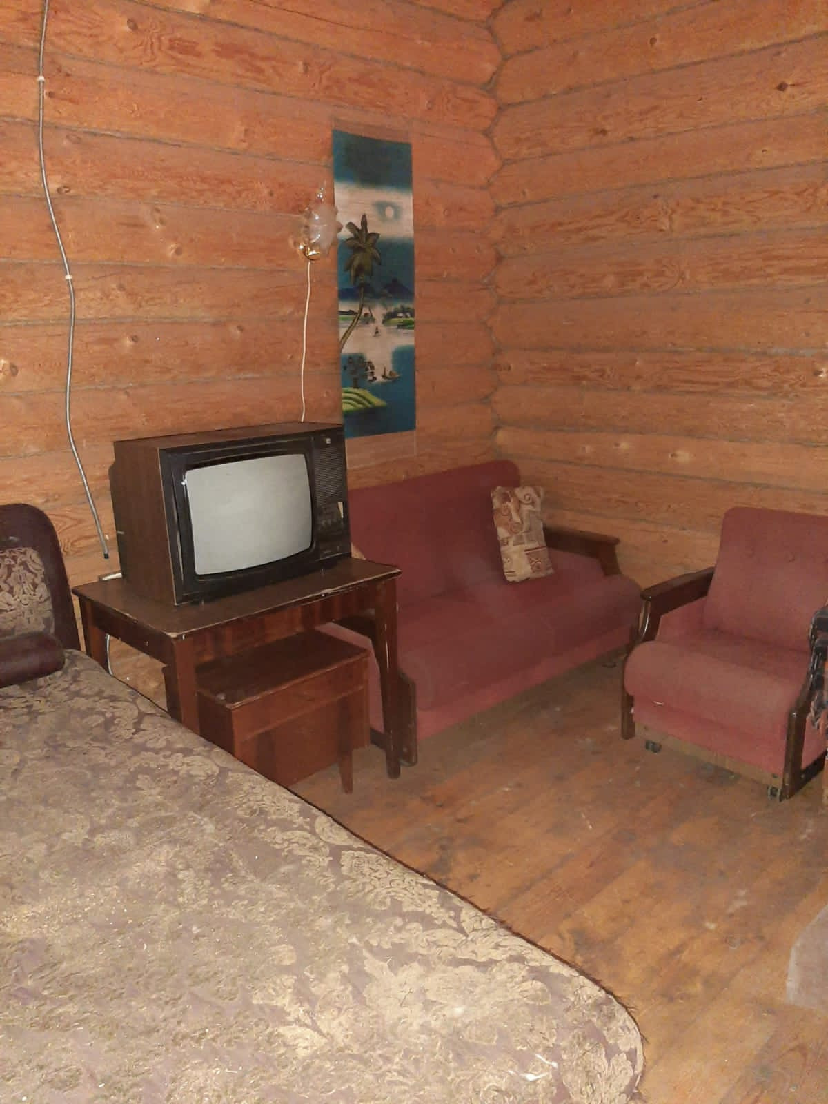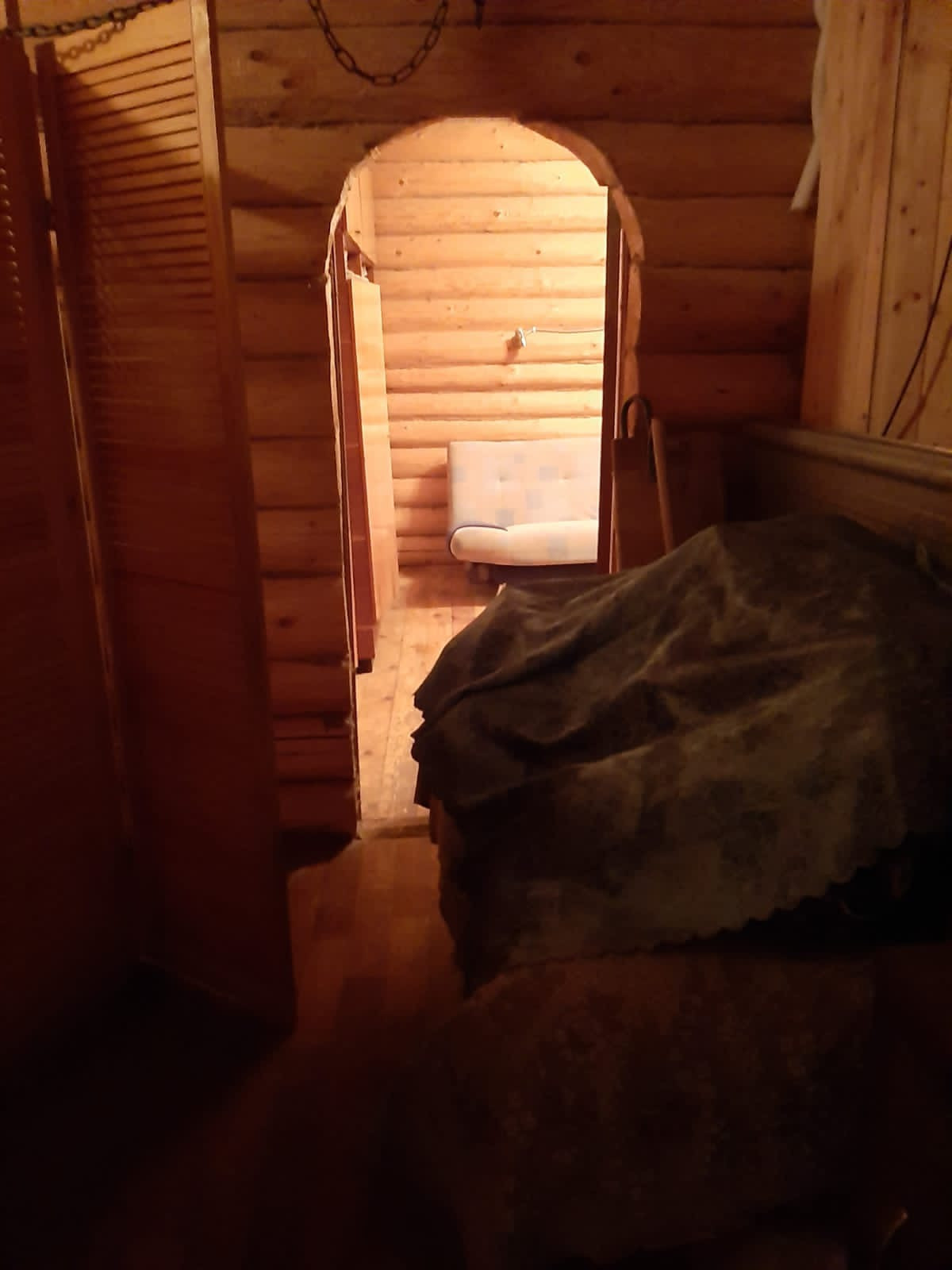 Второй этаж - бревенчатый сруб. Прихожая, 2 спальни, зал, сауна с душевой кабиной, туалет.