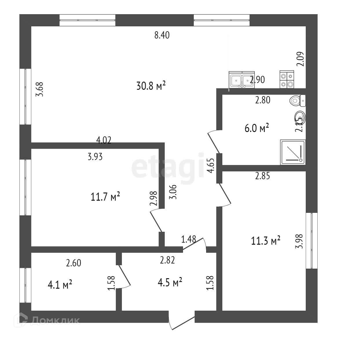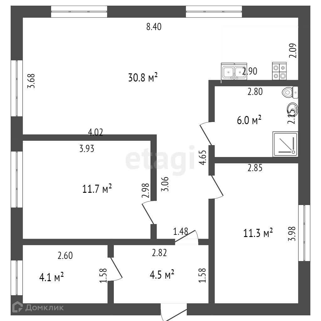 Общая площадь 70.5 м2