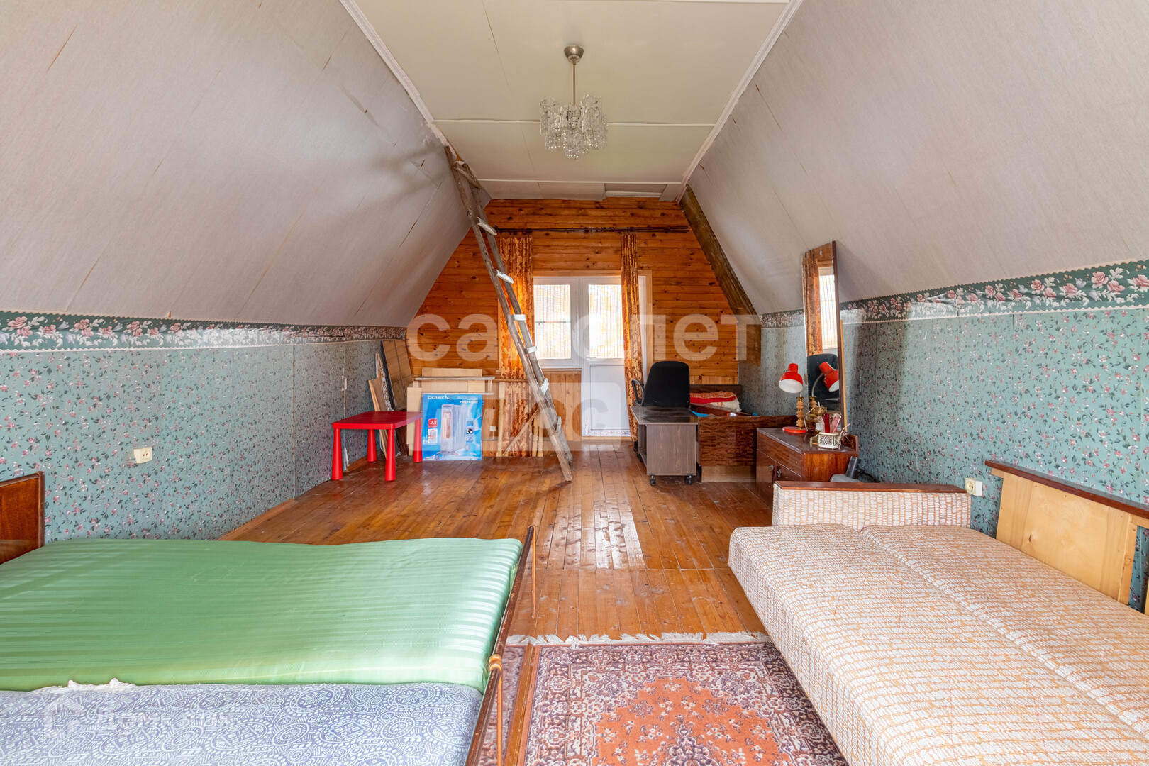 2-этажный дом из бруса. Большая гостиная, спальня на втором этаже. При желании можно провести отопление и жить в нем,