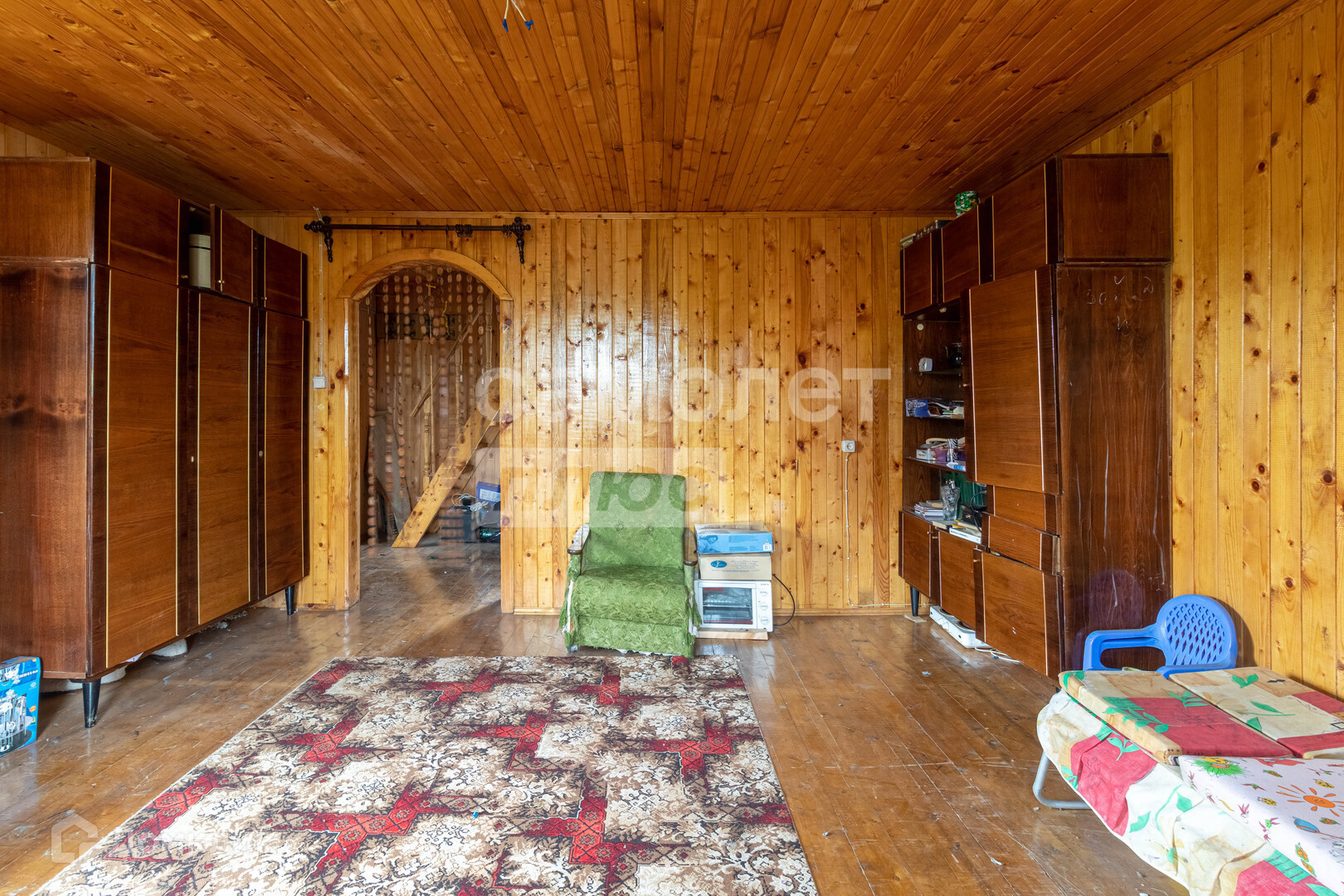 внутри отделка - деревянная вагонка,