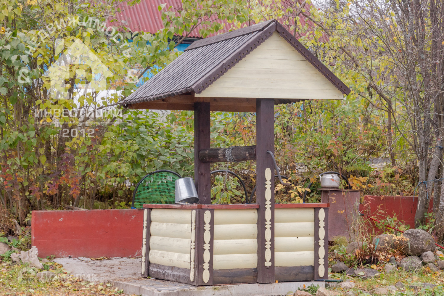 Имеются две теплицы, парник, плодово-ягодные культуры. Построен колодец, вода чистая, соответствует нормам. Есть две станции для подачи проточной воды. Одна находится в резерве.