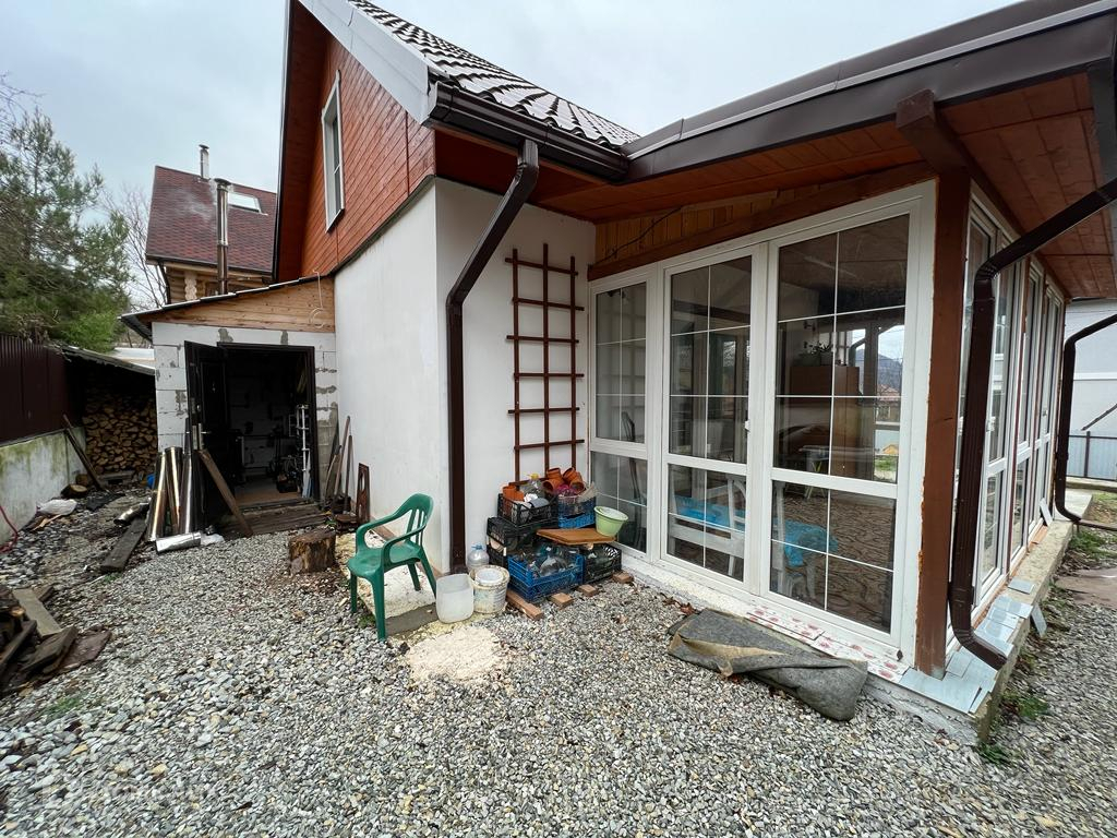 Дом построен из качественных материалов, утеплён, во всём доме и террасе установлены пластиковые стеклопакеты, кровля металлочерепица, местами облицован деревом, что придаёт потрясающий вид!