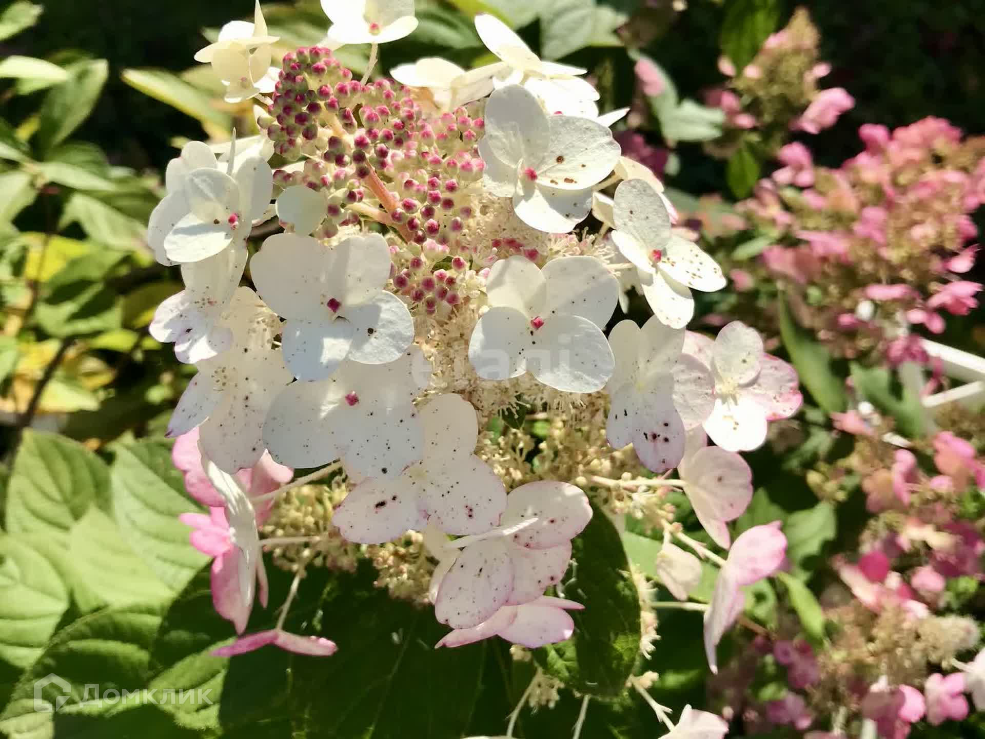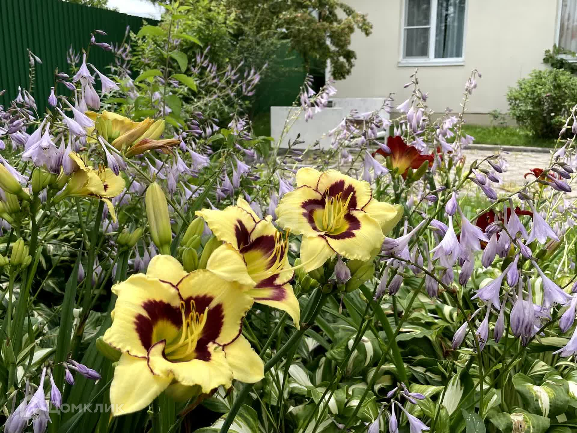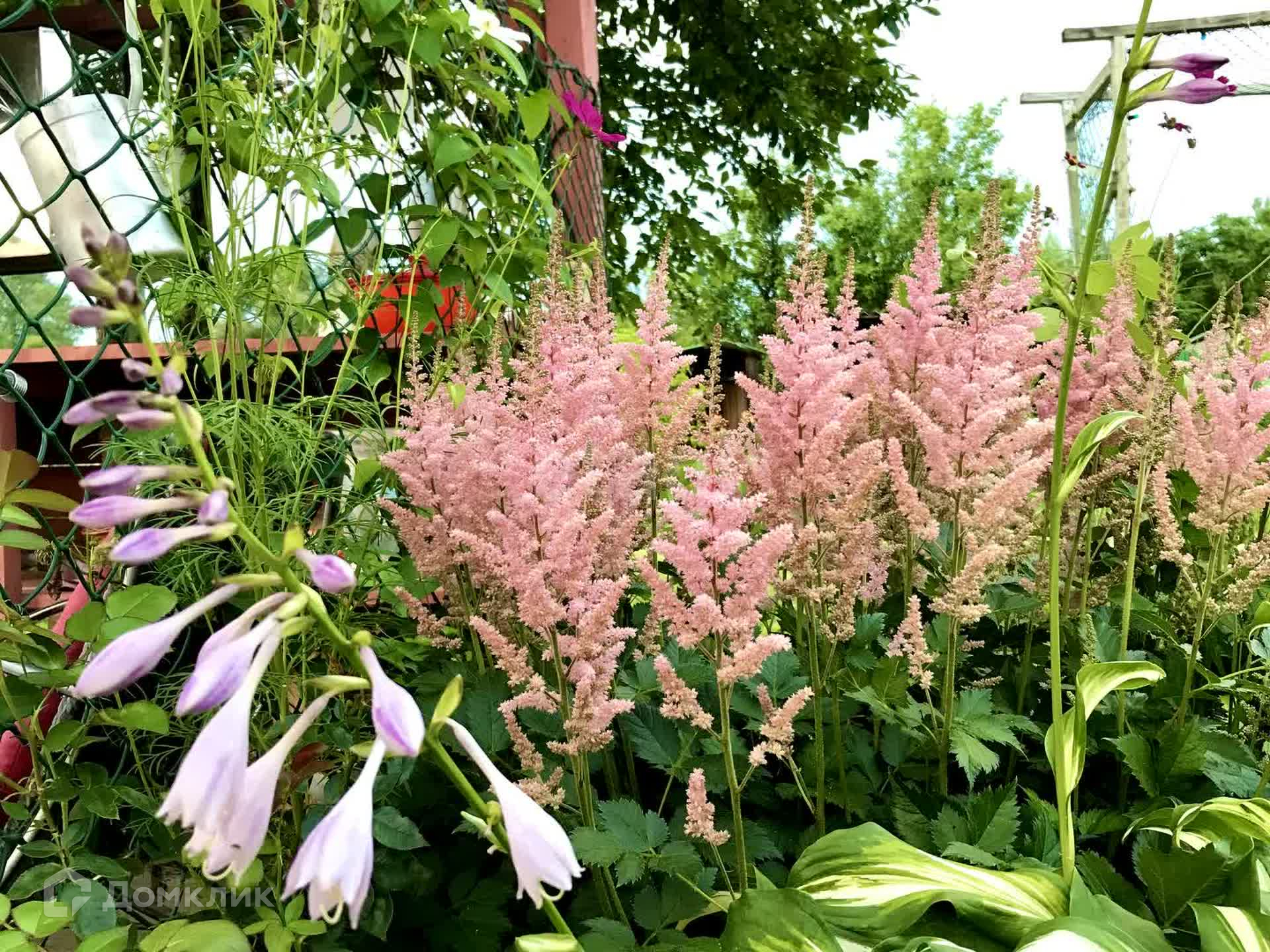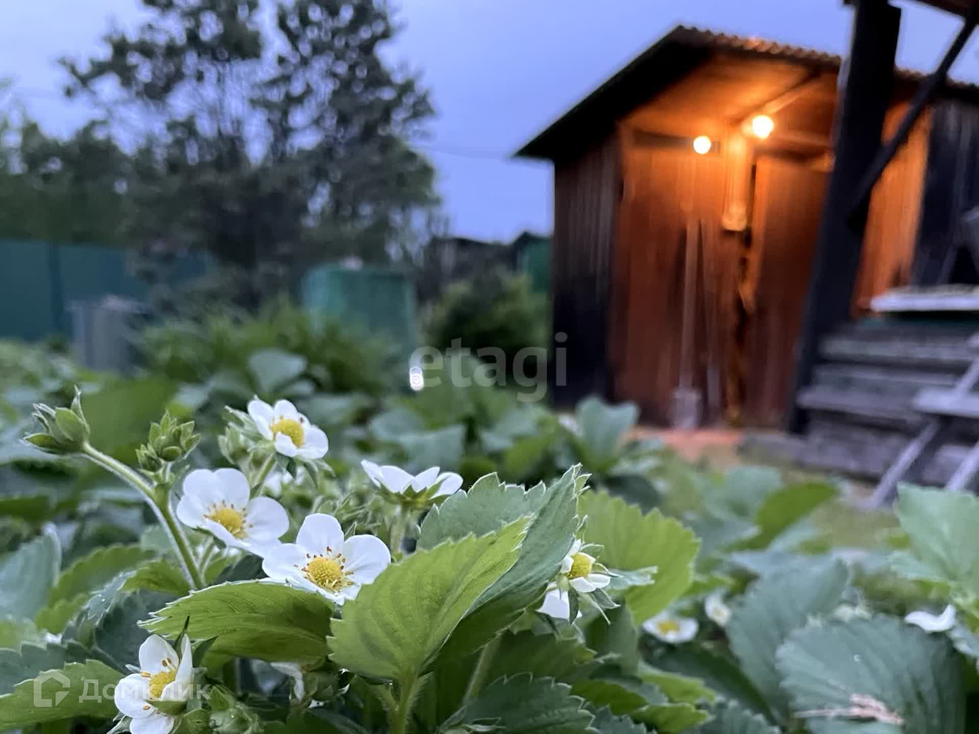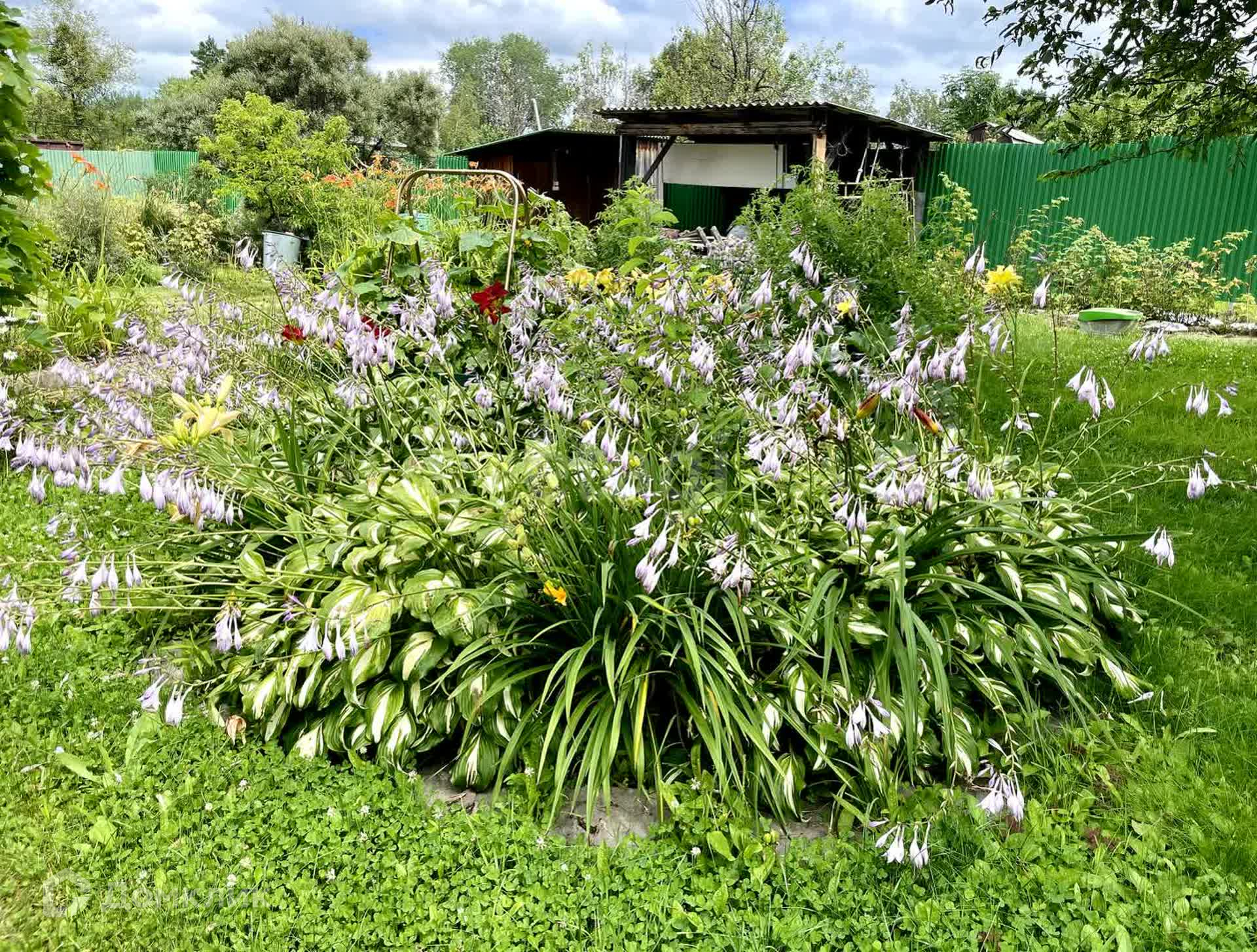 Огород небольшой, в основном на участке газон и цветы. Вишня, смородина, жимолость, клубника, черёмуха, малина, облепиха, виноград. Есть дикая яблоня, очень красиво цветёт. И декоративный шиповник.