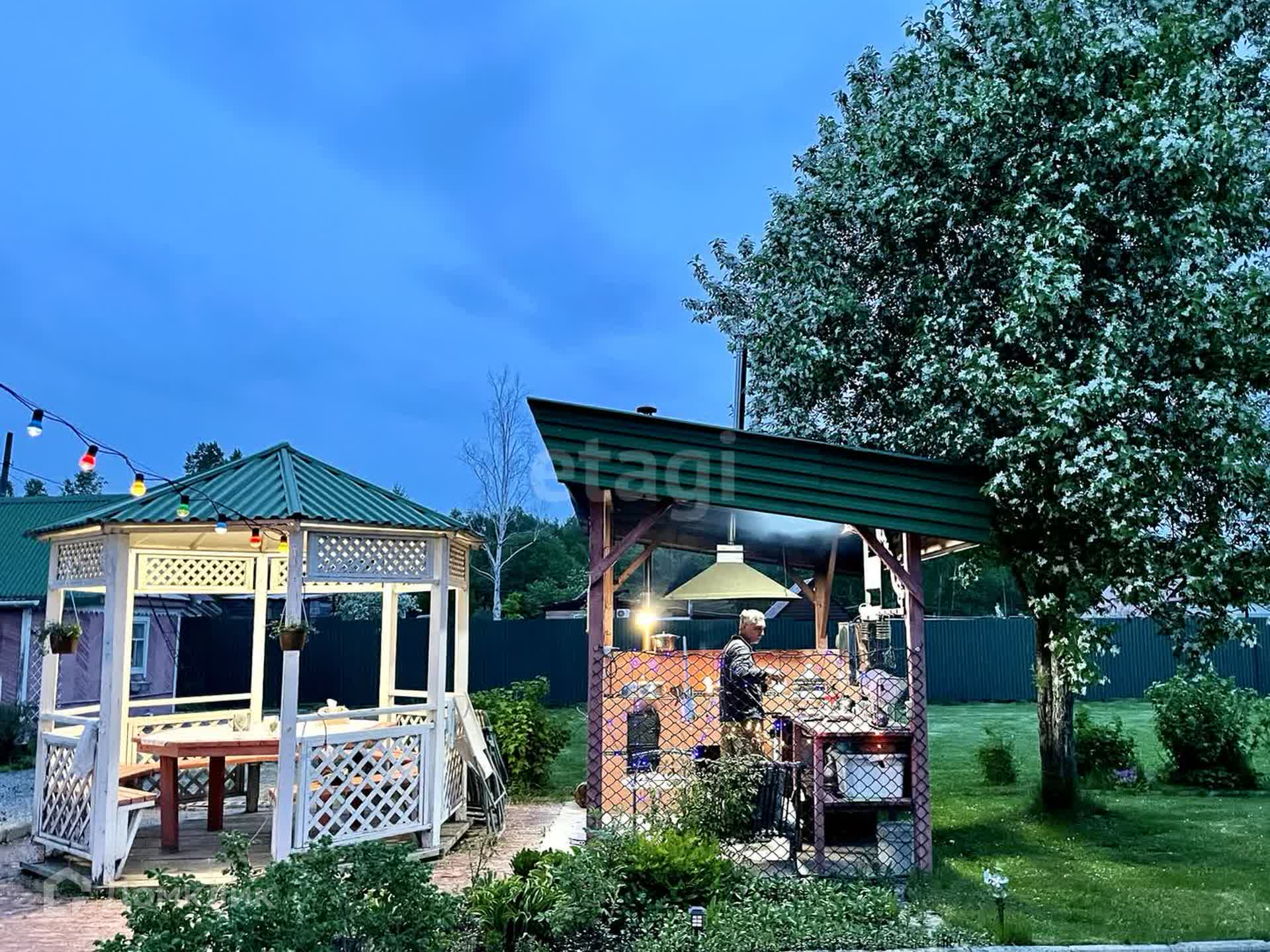 Во дворе беседка и летняя кухня (электротен, казан, мангал, газовая печь с духовкой).