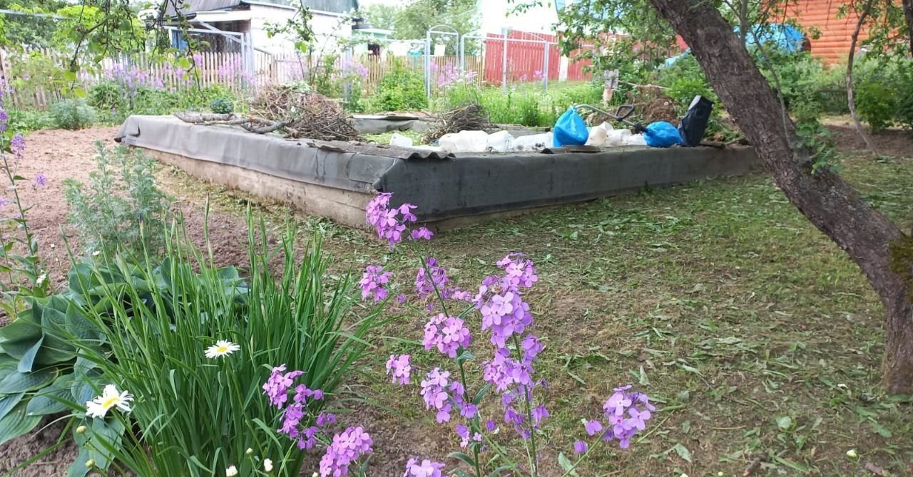 Дачный участок ухоженный. На участке яблони, груша, калина, смородина, крыжовник, жимолость, ежевика. Жасмин, сирень, многолетние цветы. Есть фундамент  под дом 6,60х5,40. Водоснабжение. Торг уместен.