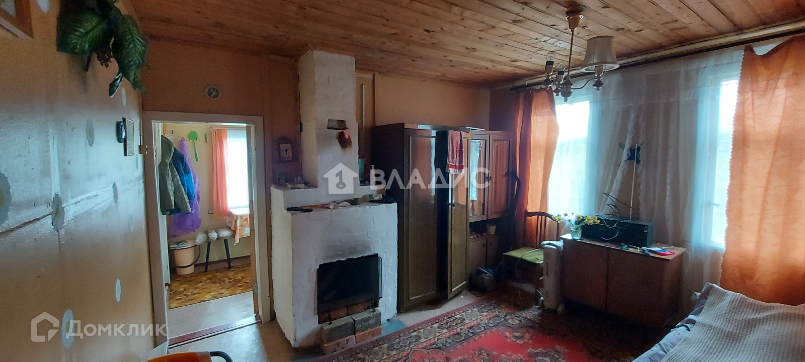 -в доме печь с жаровней духовкой и камином