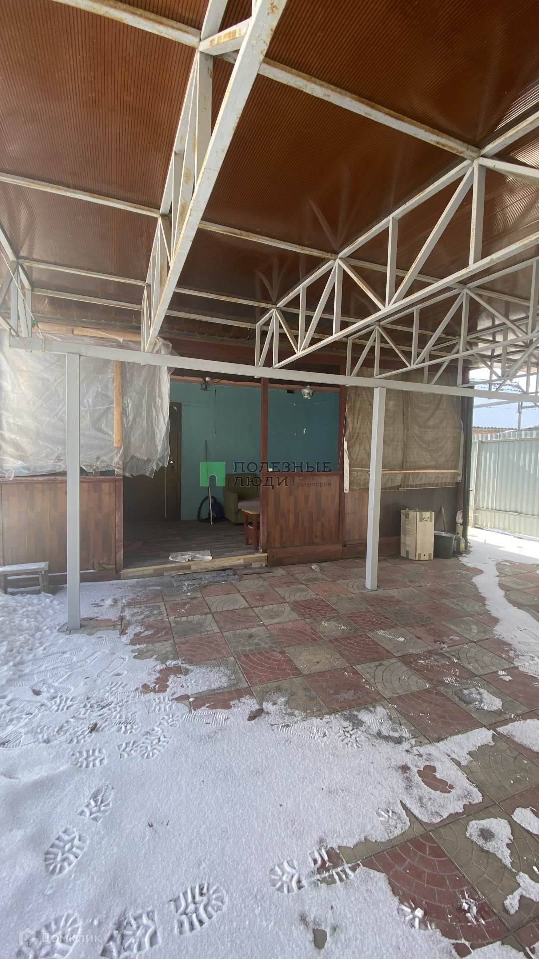 Дом из кирпича, крыша перекрыта металлочерепепицой,  открытая веранда.