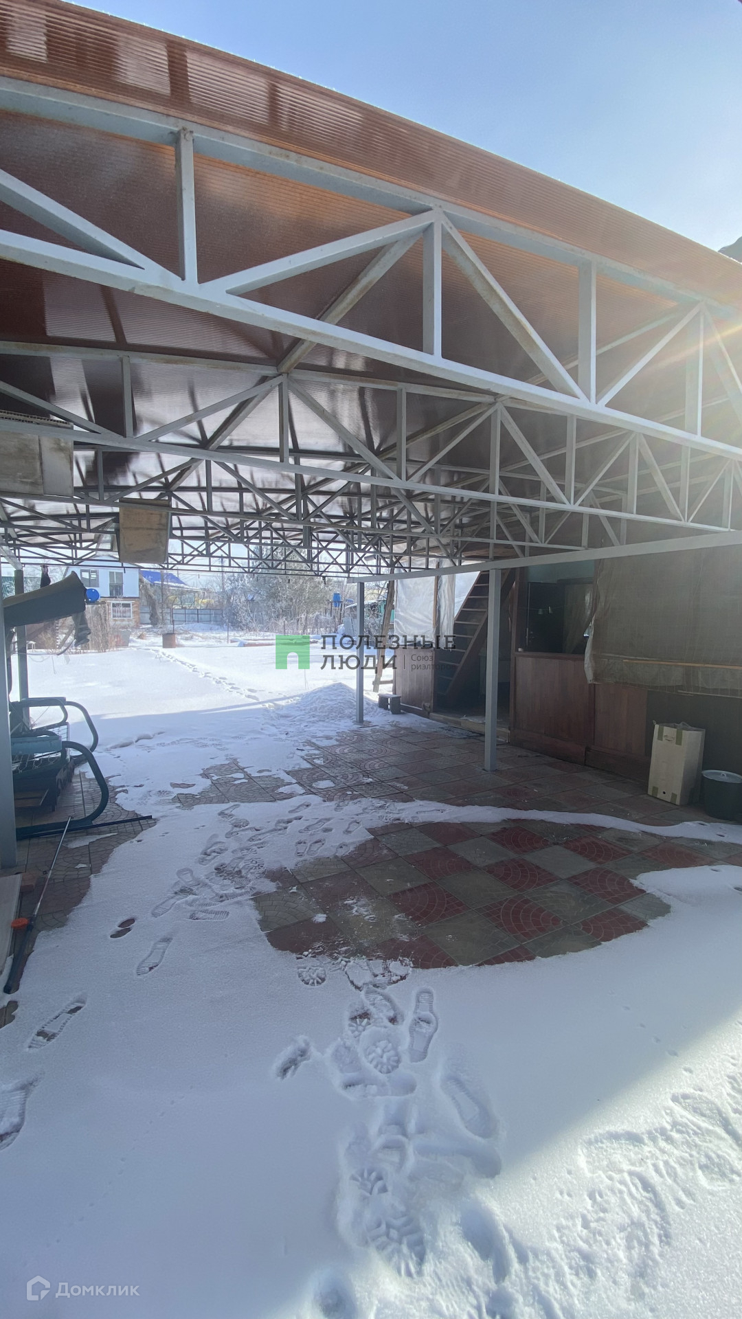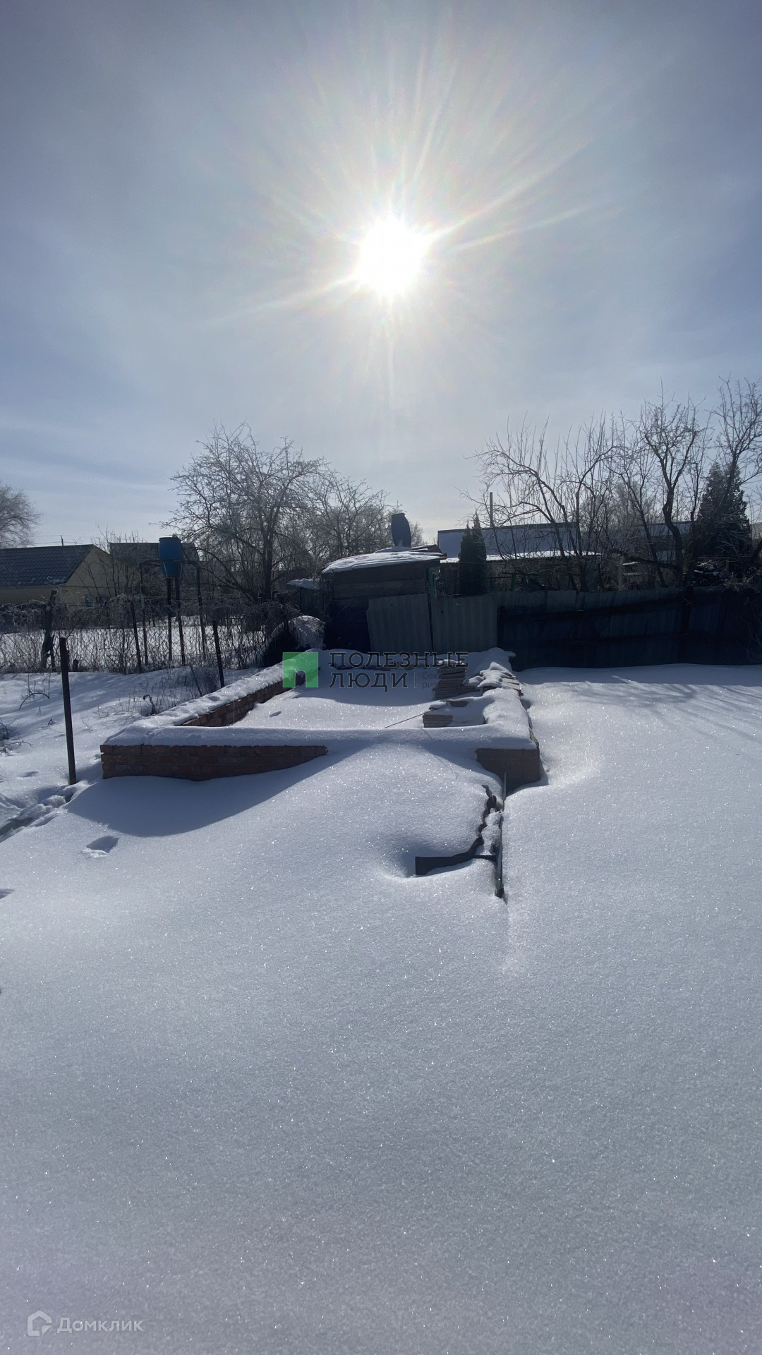 На участке крытое  место под машину (2 машины помещаются), емкость под воду, туалет, душ, фундамент под баню.