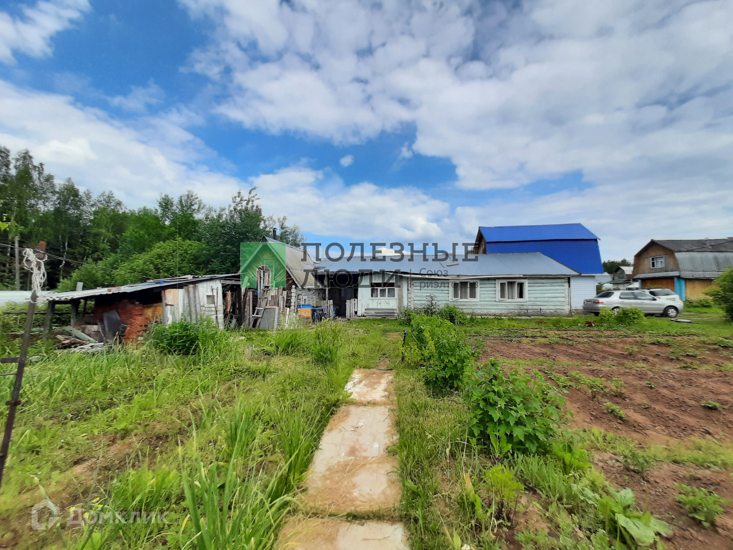 Большой навес - крытый переход из дома в баню, можно использовать как беседку.