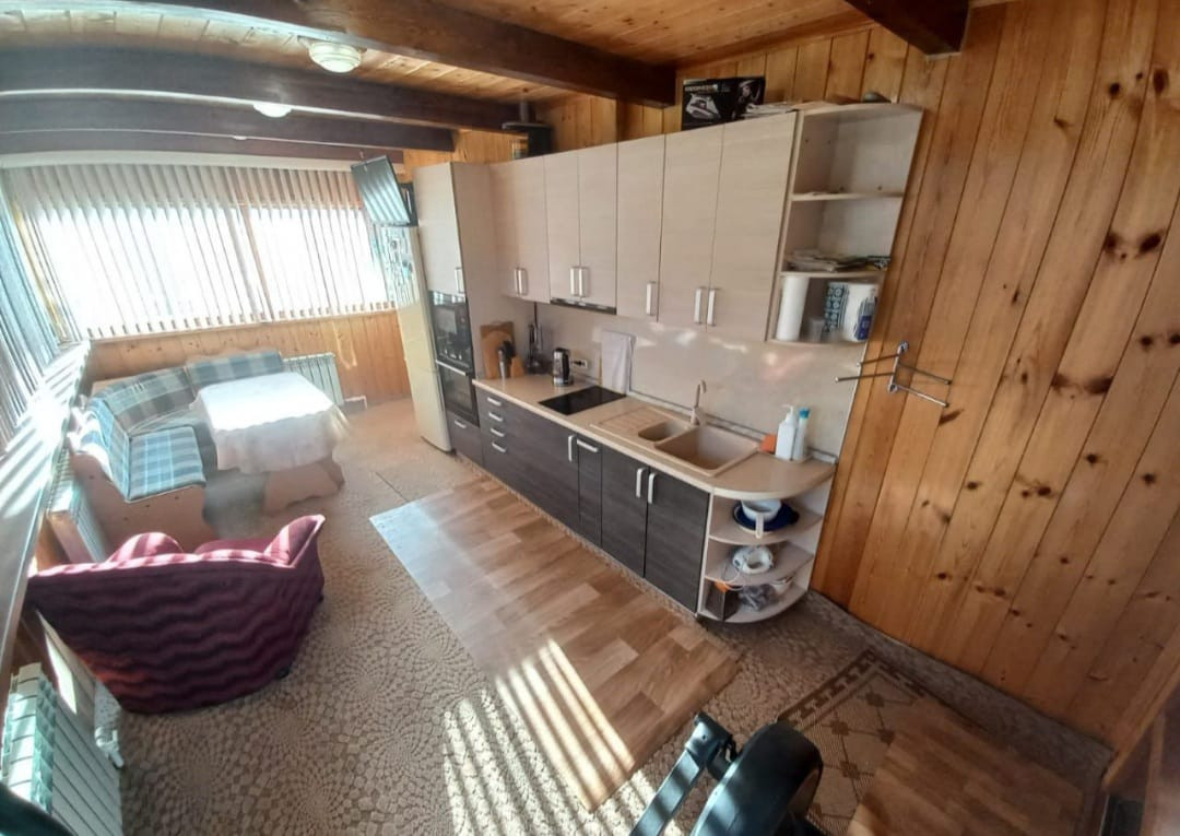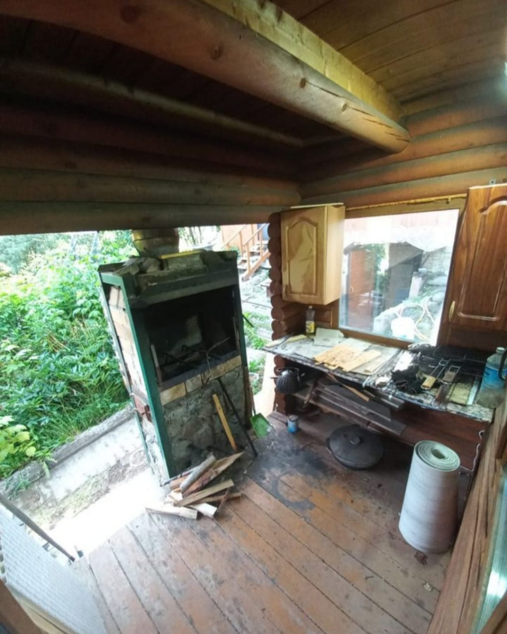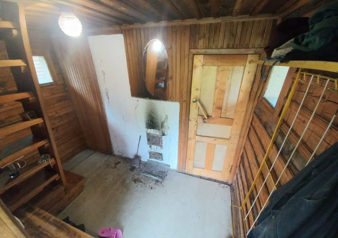 - на первом этаже находится: веранда, прихожая, жилая комната (в комнате находится камин), кухня, сан. узел.