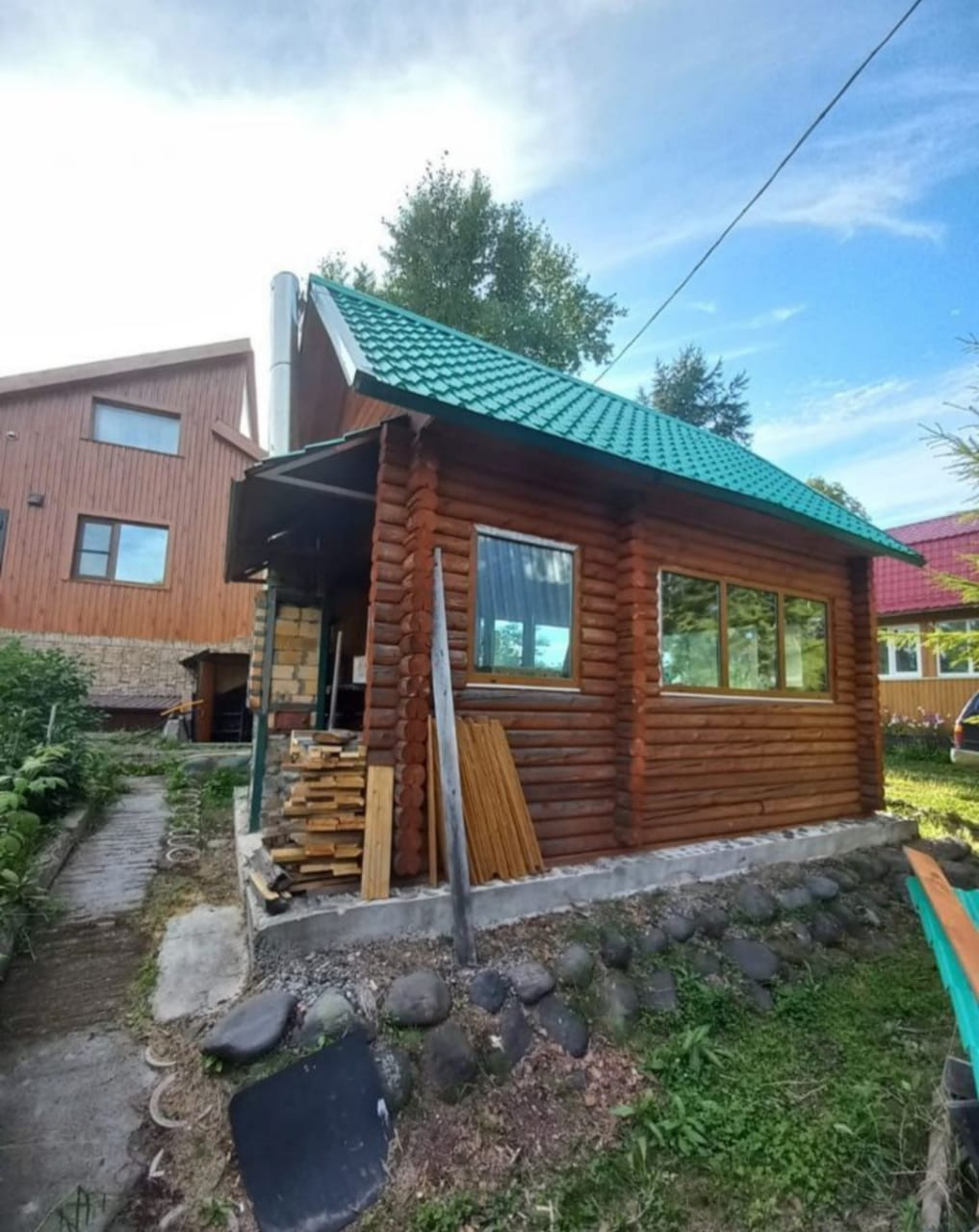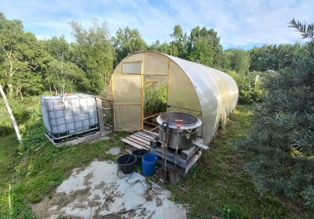 На территории: Баня, Беседка с зоной барбекю, Теплицы.