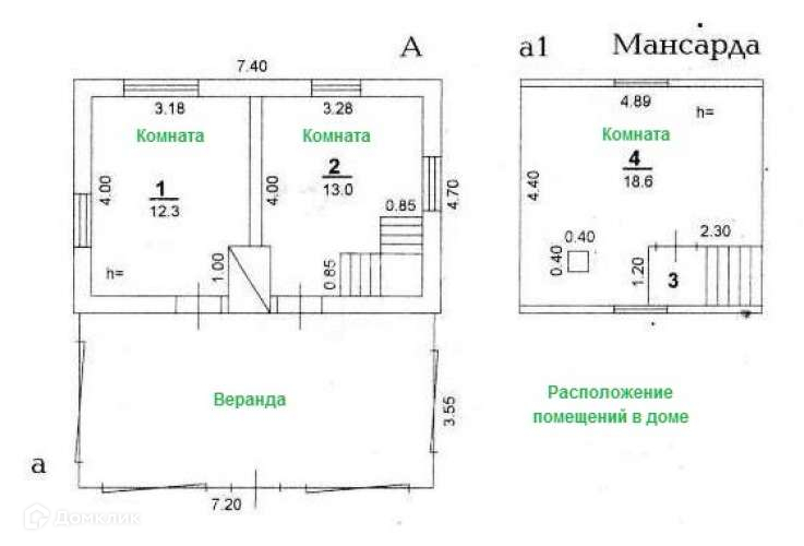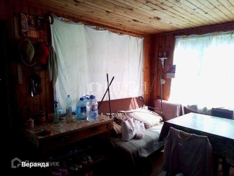 Дом – 1 этаж из блоков, обложенных кирпичом, 2 этаж из бруса обшитого вагонкой, окна – деревянные. На первом этаже располагается просторная закрытая веранда (25,6 кв.м) с кухней, две комнаты (13 и 12,3 кв.м). Второй этаж – большая спальная комната (18,6 кв.м).