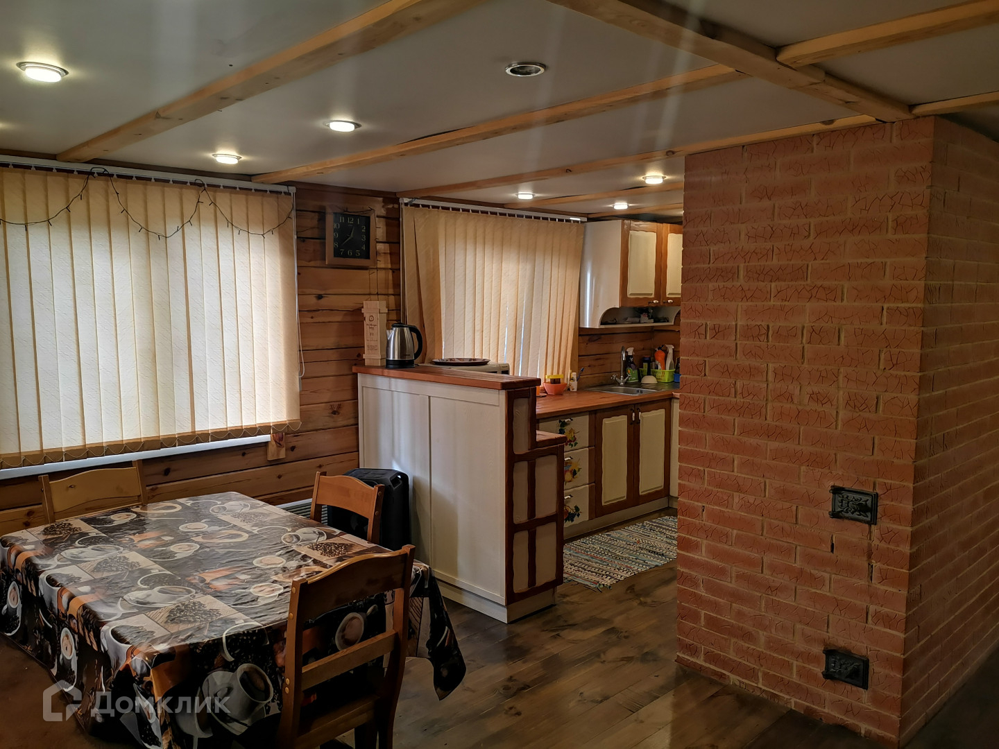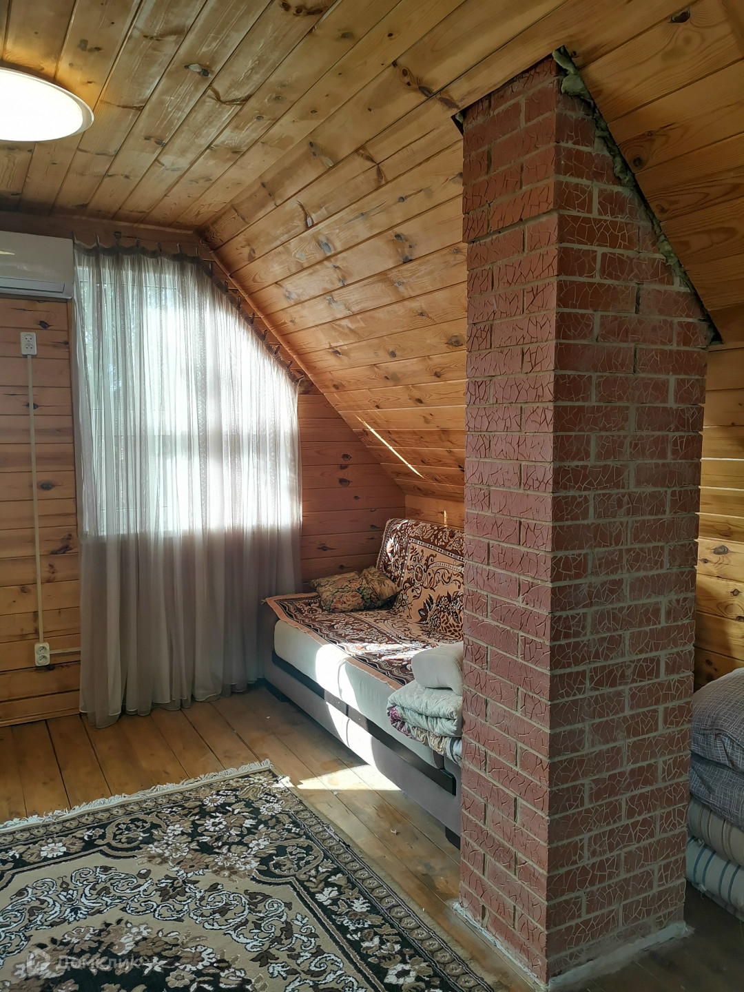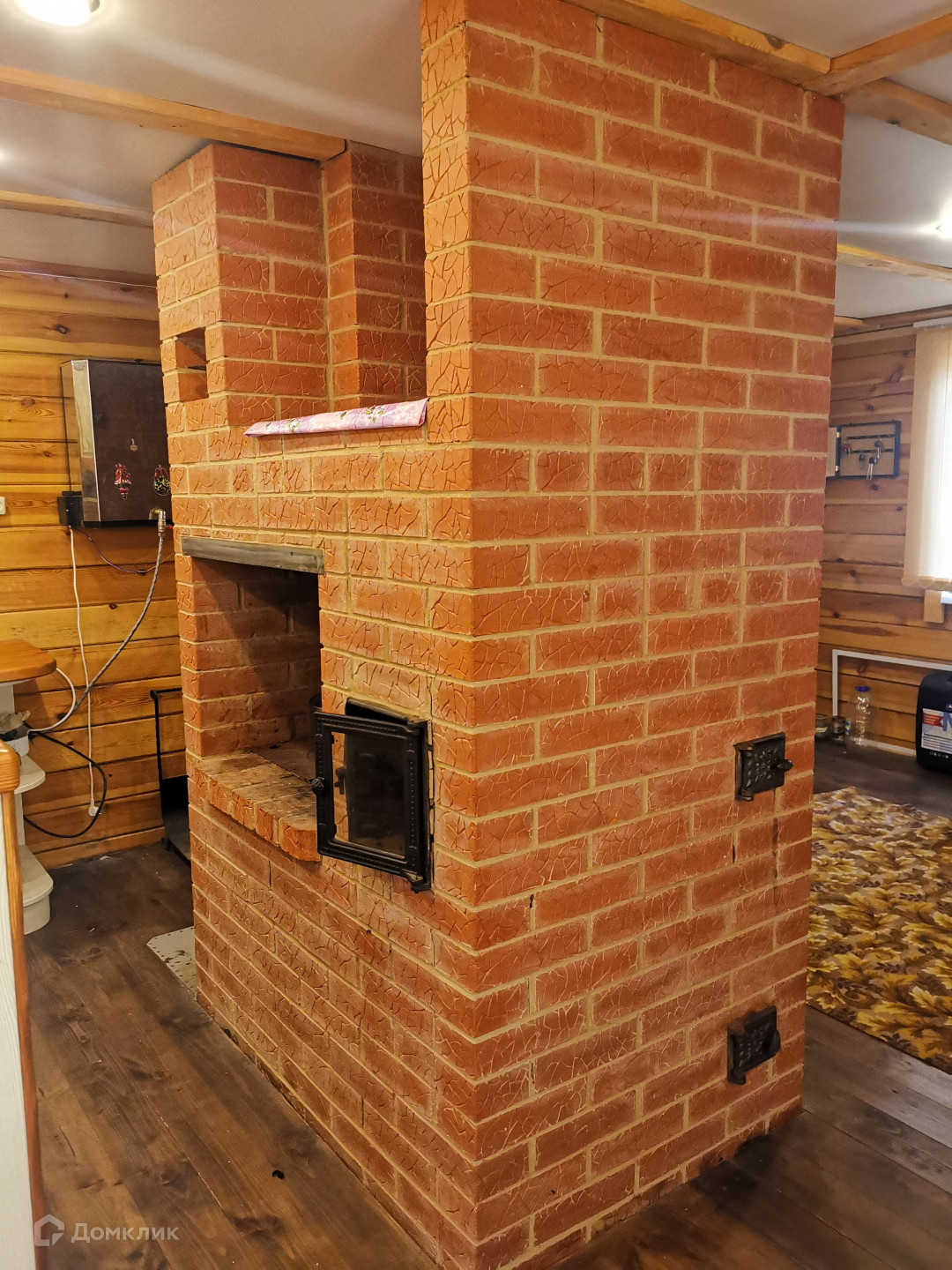 Основной дом (этажность 2 эт.). Первый этаж - 36 кв. м. + пристрой 18 кв. м. Второй этаж(мансардный) - 25 кв. м. На первом этаже расположены кухня-гостиная,  прихожая (3х3 м.), сан. узел (3х3 м. - душевая кабина, раковина, унитаз, место под стиральную машину, водонагреватель на 100 литров), летняя веранда (3х3 м.). При желании на первом этаже можно пристроить еще одну комнату (фундамент залит). На втором этаже расположена комната отдыха. Установлен кондиционер. Материал стен - шлифованный профилированный брус, пол - лакированная доска-шпунтовка. Пол утеплен, стены проконопачены. Окна ПВХ. Отопление печное + конвекторы. Водоснабжение - своя скважина (40 метров). Локальная канализация (бетонированная герметичная емкость на 4 куб. м.). Установлены счетчики на электричество. Электричество круглогодично. Установлена охранная сигнализация "Регион".