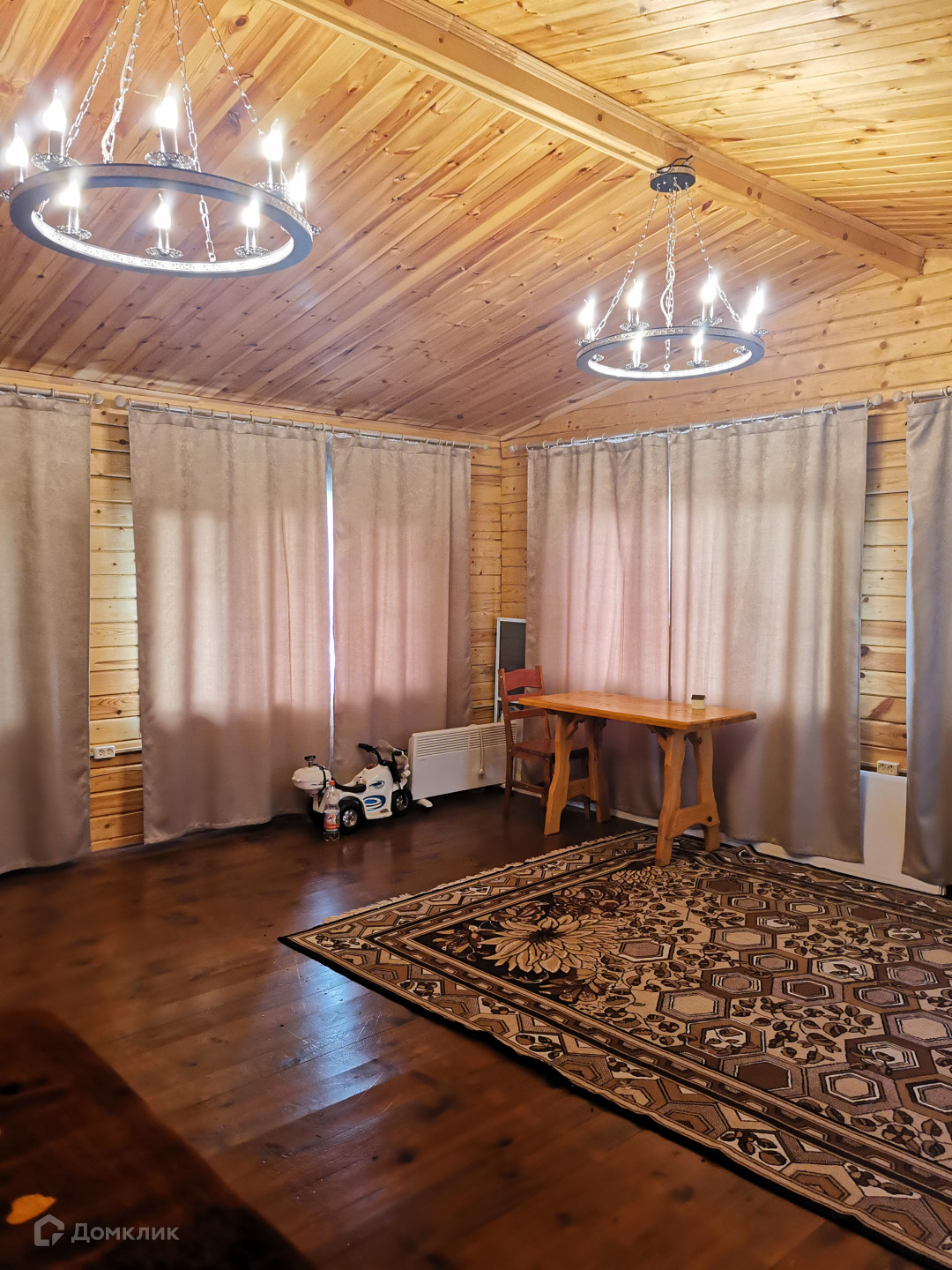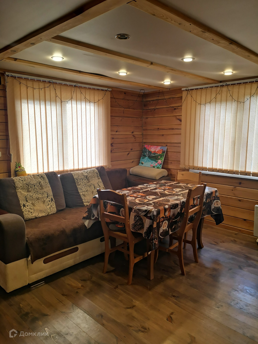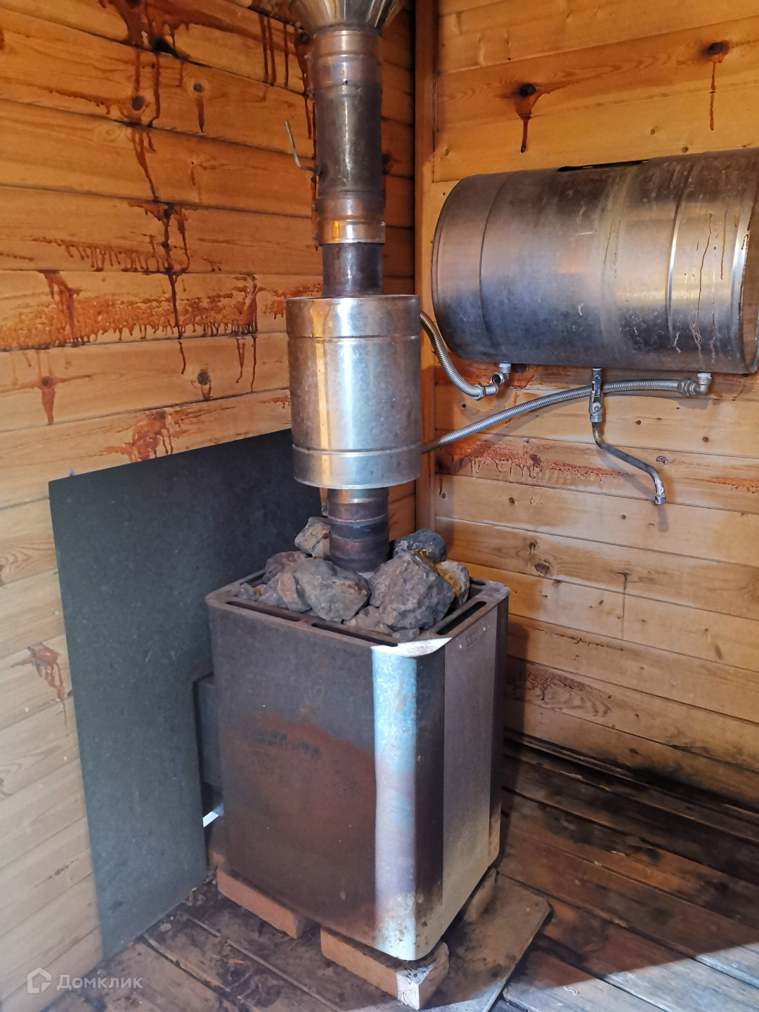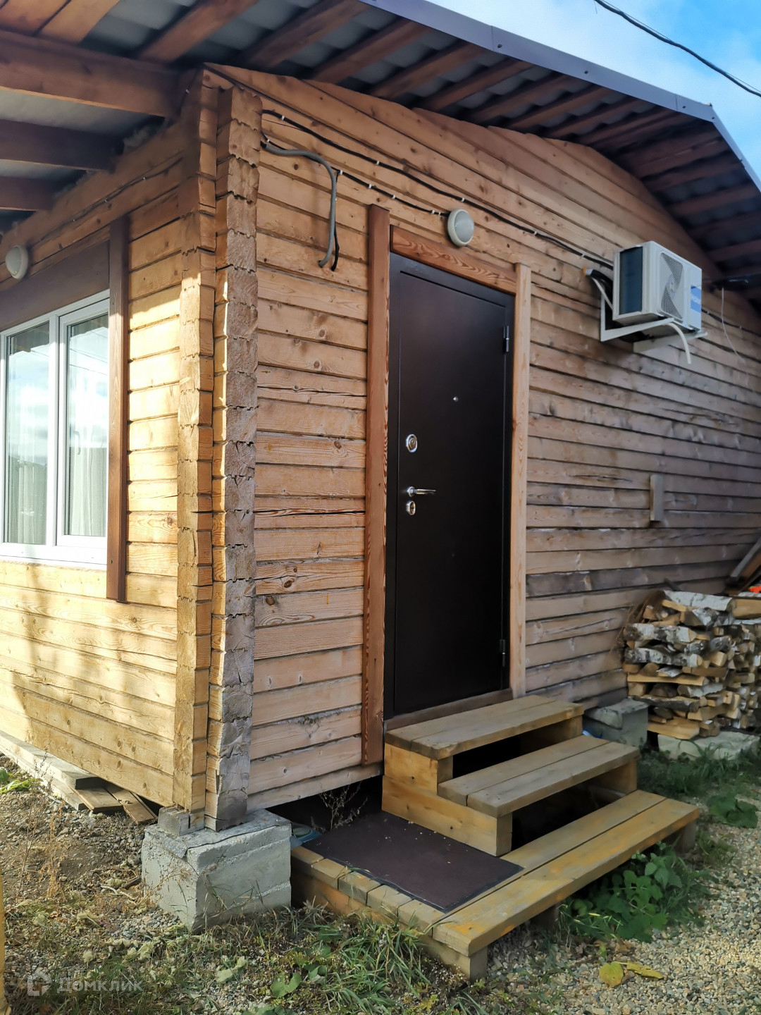 Основной дом (этажность 2 эт.). Первый этаж - 36 кв. м. + пристрой 18 кв. м. Второй этаж(мансардный) - 25 кв. м. На первом этаже расположены кухня-гостиная,  прихожая (3х3 м.), сан. узел (3х3 м. - душевая кабина, раковина, унитаз, место под стиральную машину, водонагреватель на 100 литров), летняя веранда (3х3 м.). При желании на первом этаже можно пристроить еще одну комнату (фундамент залит). На втором этаже расположена комната отдыха. Установлен кондиционер. Материал стен - шлифованный профилированный брус, пол - лакированная доска-шпунтовка. Пол утеплен, стены проконопачены. Окна ПВХ. Отопление печное + конвекторы. Водоснабжение - своя скважина (40 метров). Локальная канализация (бетонированная герметичная емкость на 4 куб. м.). Установлены счетчики на электричество. Электричество круглогодично. Установлена охранная сигнализация "Регион".
