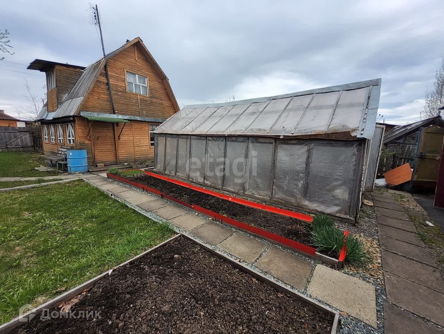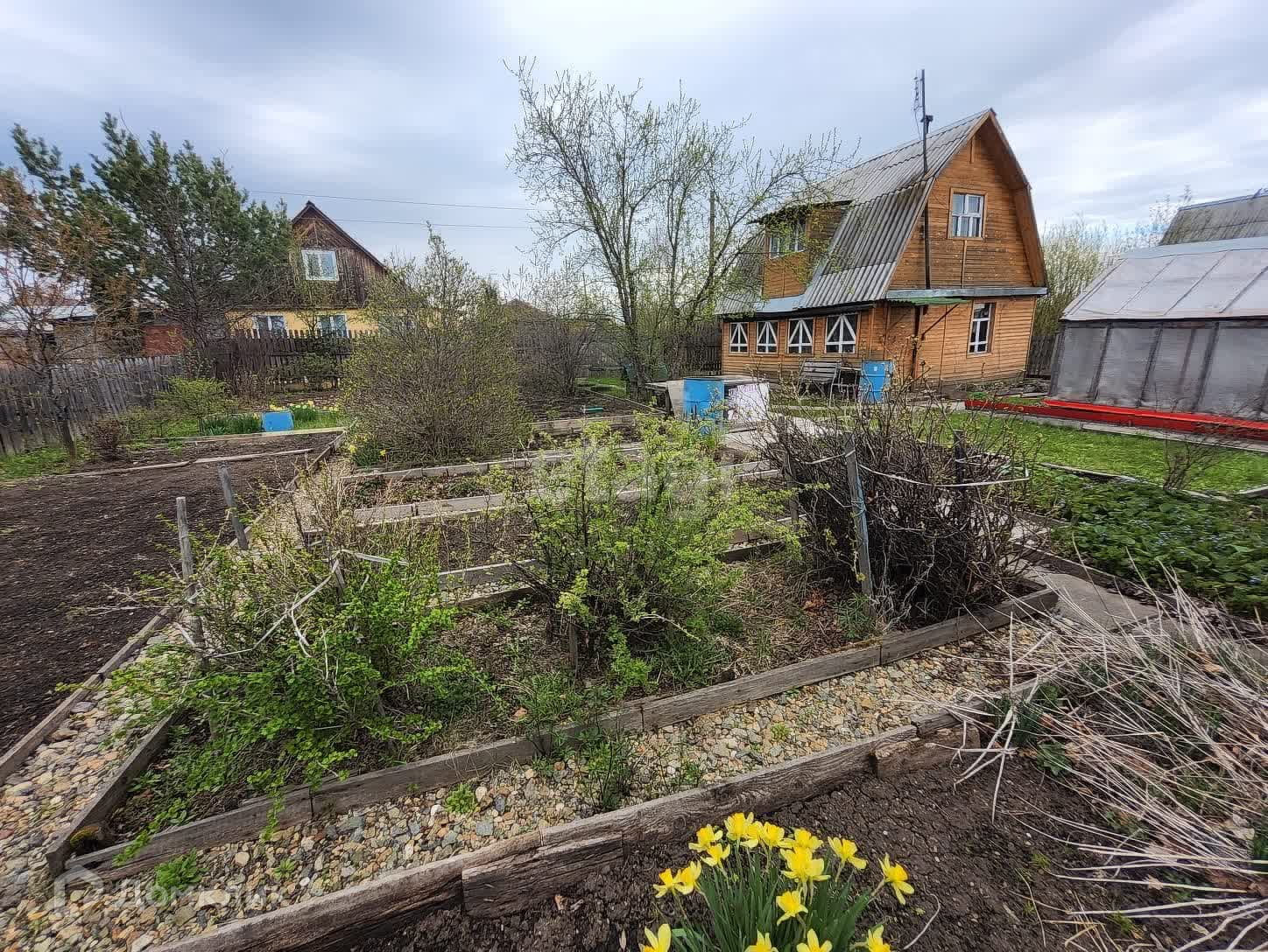 На участке расположен дом с мансардным этажом, баня с комнатой для отдыха, 2 теплицы, беседка с зоной для барбекю. Участок разработан и ухожен, много цветов и плодовых деревьев. На участке есть колодец и летний водопровод.