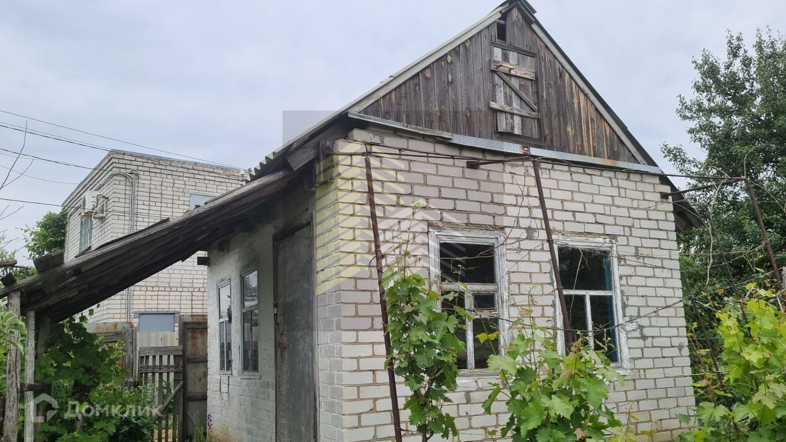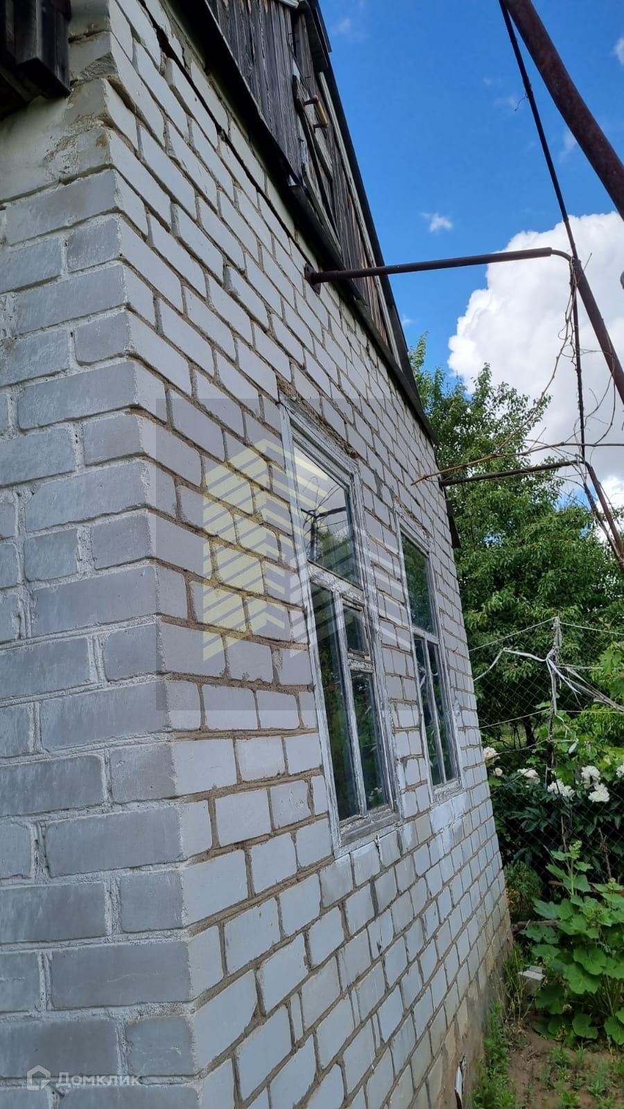 На участке кирпичный 1-этажный домик (2 комнаты), хозяйственные постройки, туалет, большая емкость для воды.