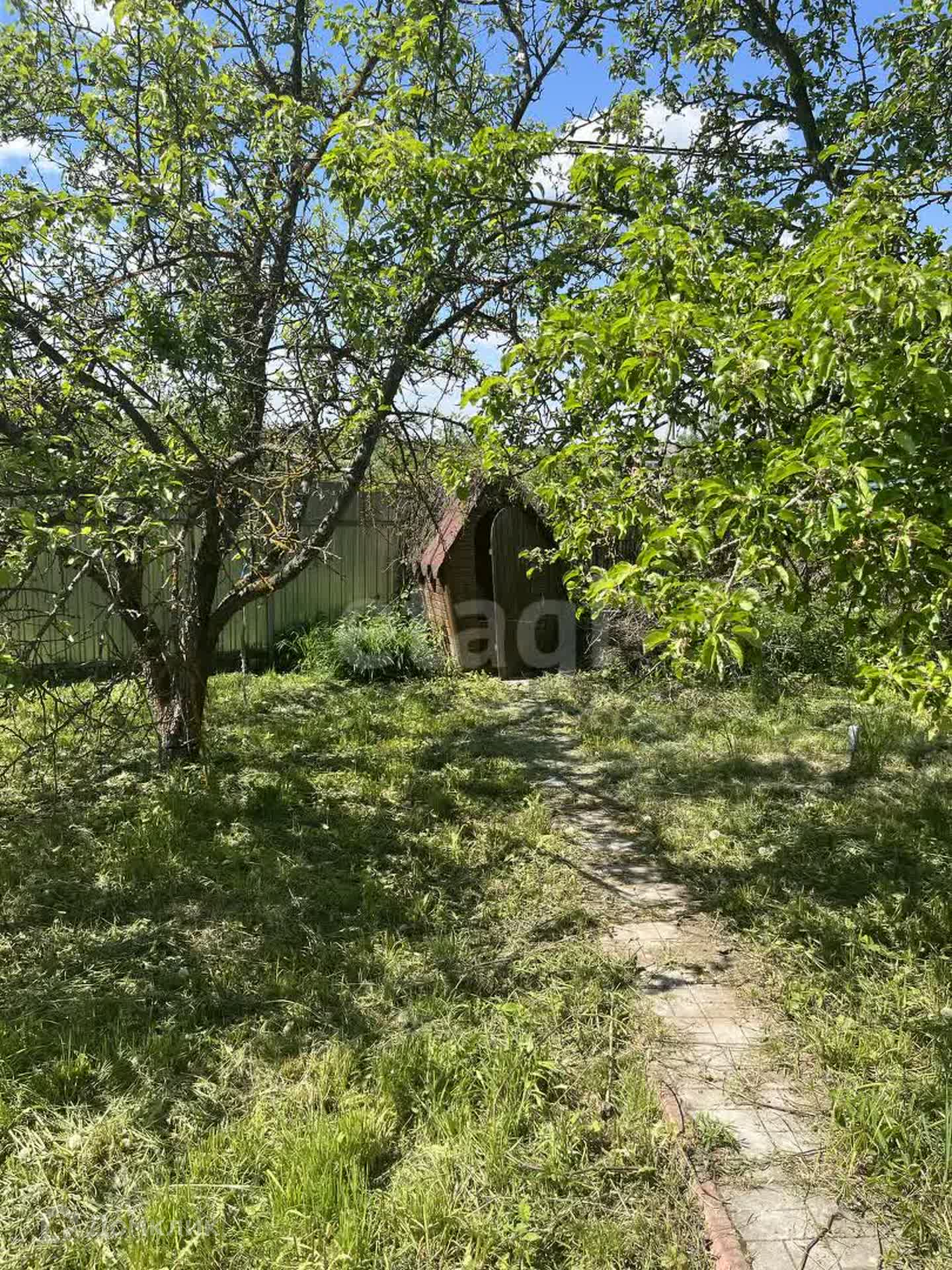 Дом обшит сайдингом. Участок огорожен с фасадной части забором из профнастила. На участке высажены плодовые деревья и кустарники.