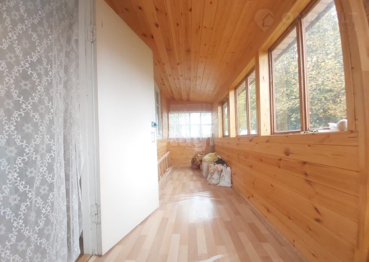 В комнате оргалит с обоями, кухня и веранда обшиты вагонкой, полы-линолеум. С наружи дом облицован сайдингом.