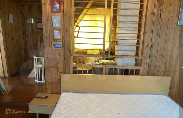 По мебели - на кухне печка электрическая, холодильник, рабочие. Два стола, диван. На первом этаже две кровати односпальные, одна двуспальная с новым матрасом, стол и два кресла. На втором этаже новый надувной матрас, шкаф-шифоньер.