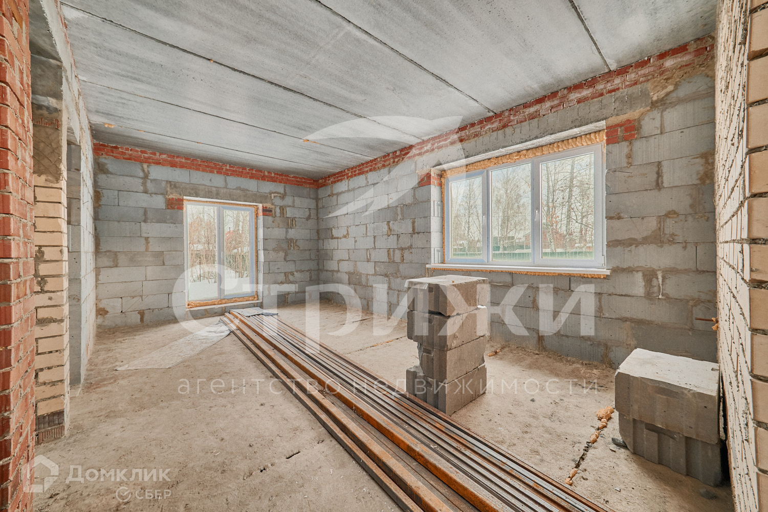 Дом построен в 2019 году из газоблока, обложен облицовочным кирпичом. Газ подведен, электричество заведено в дом, выгребная яма (3 больших кольца на 2 м. в диаметре).