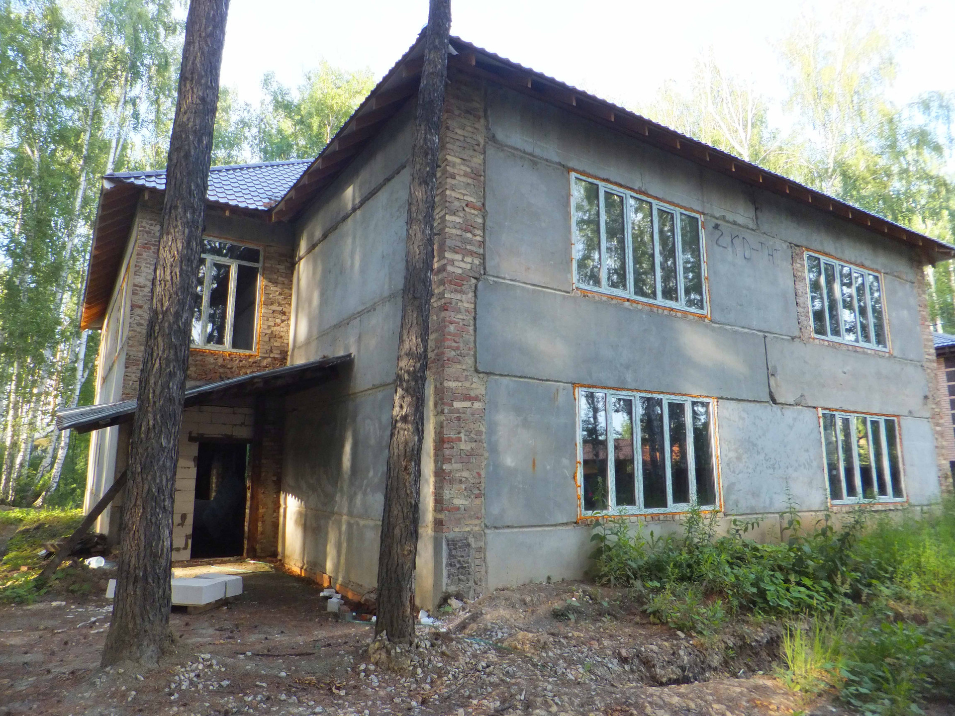Установлены двукамерные окна. Утепленная кровля лежит на плитах перекрытия.