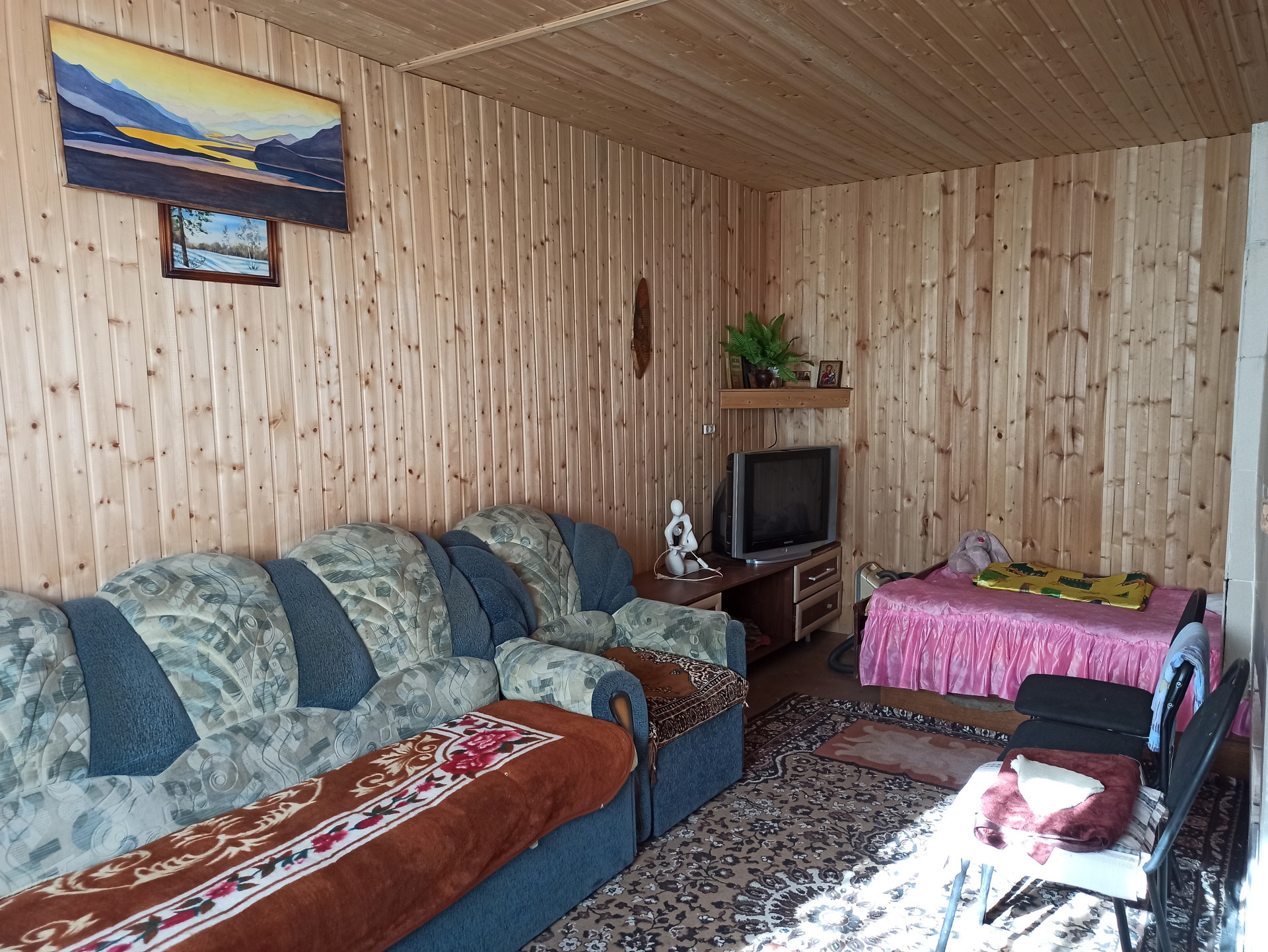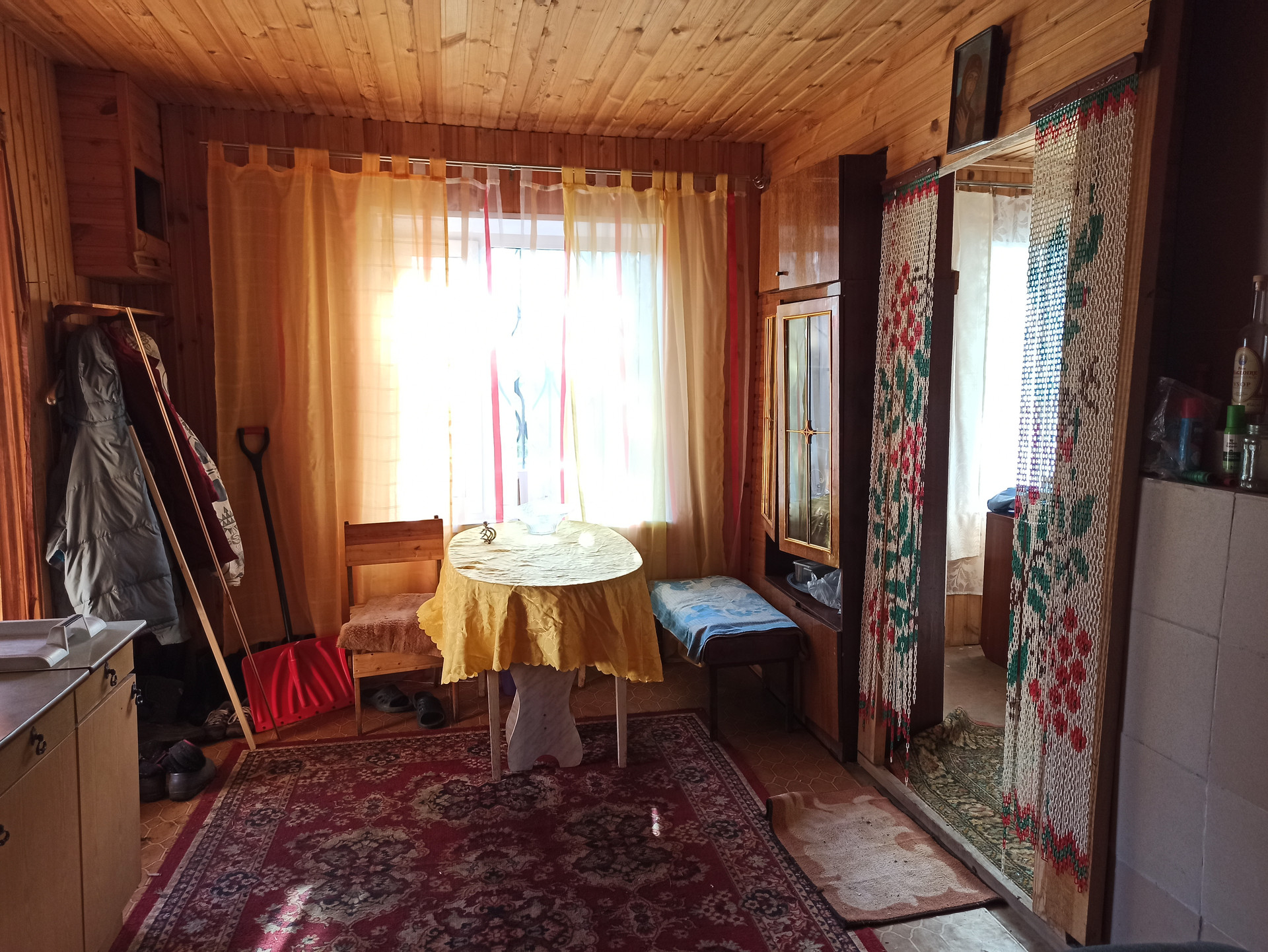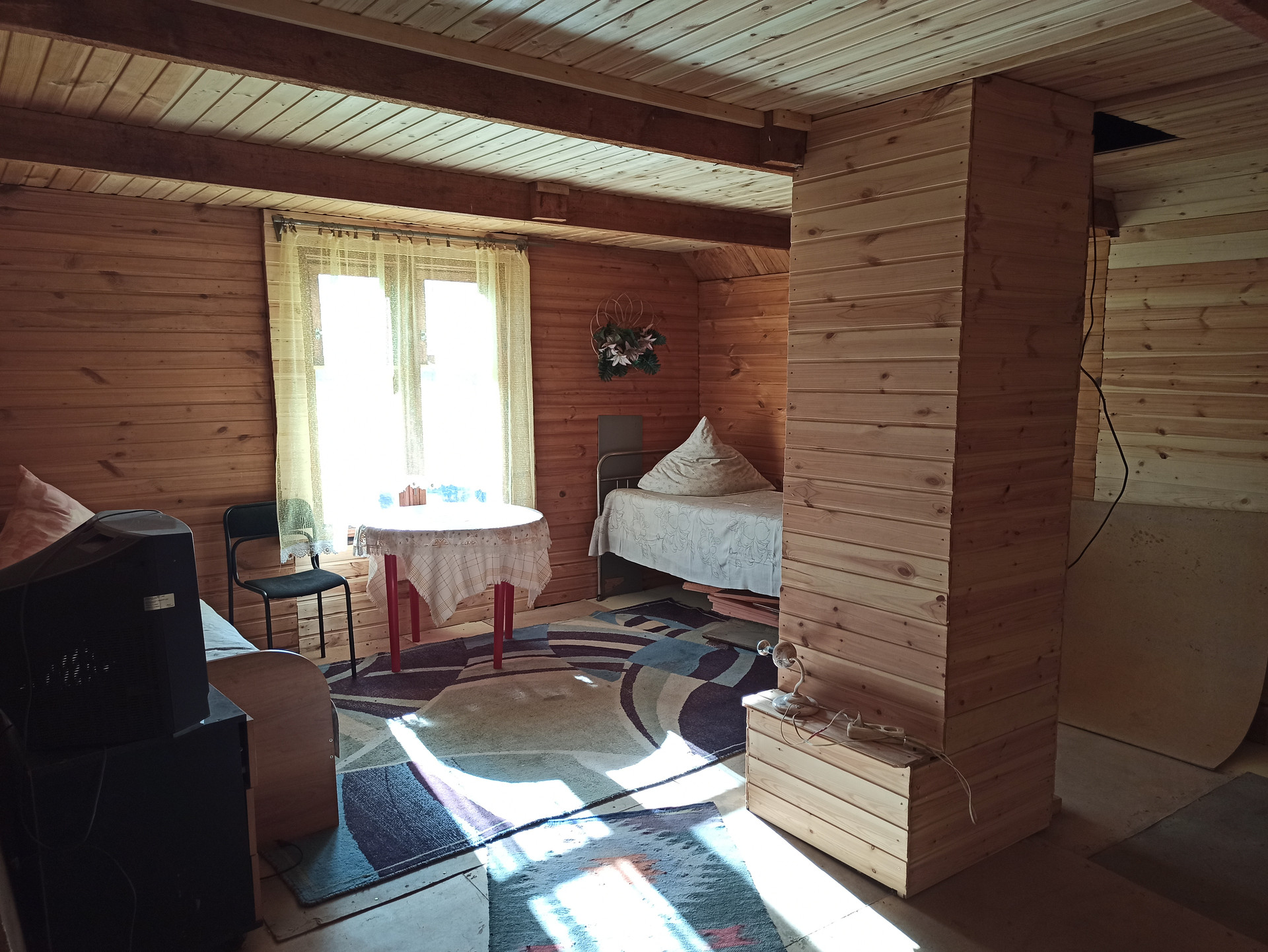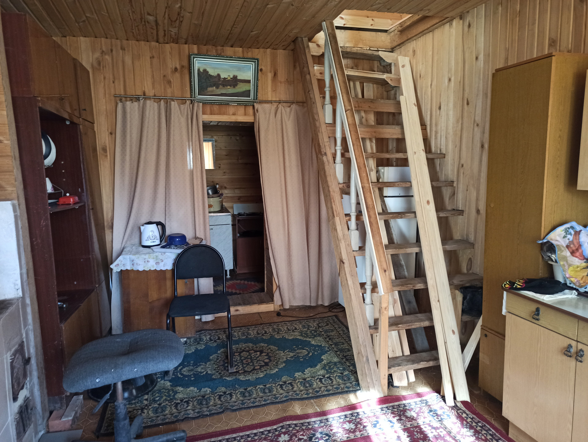 2х этажный добротный бревенчатый дом 6х7м + веранда и летняя кухня, отопление печное, с/узел.