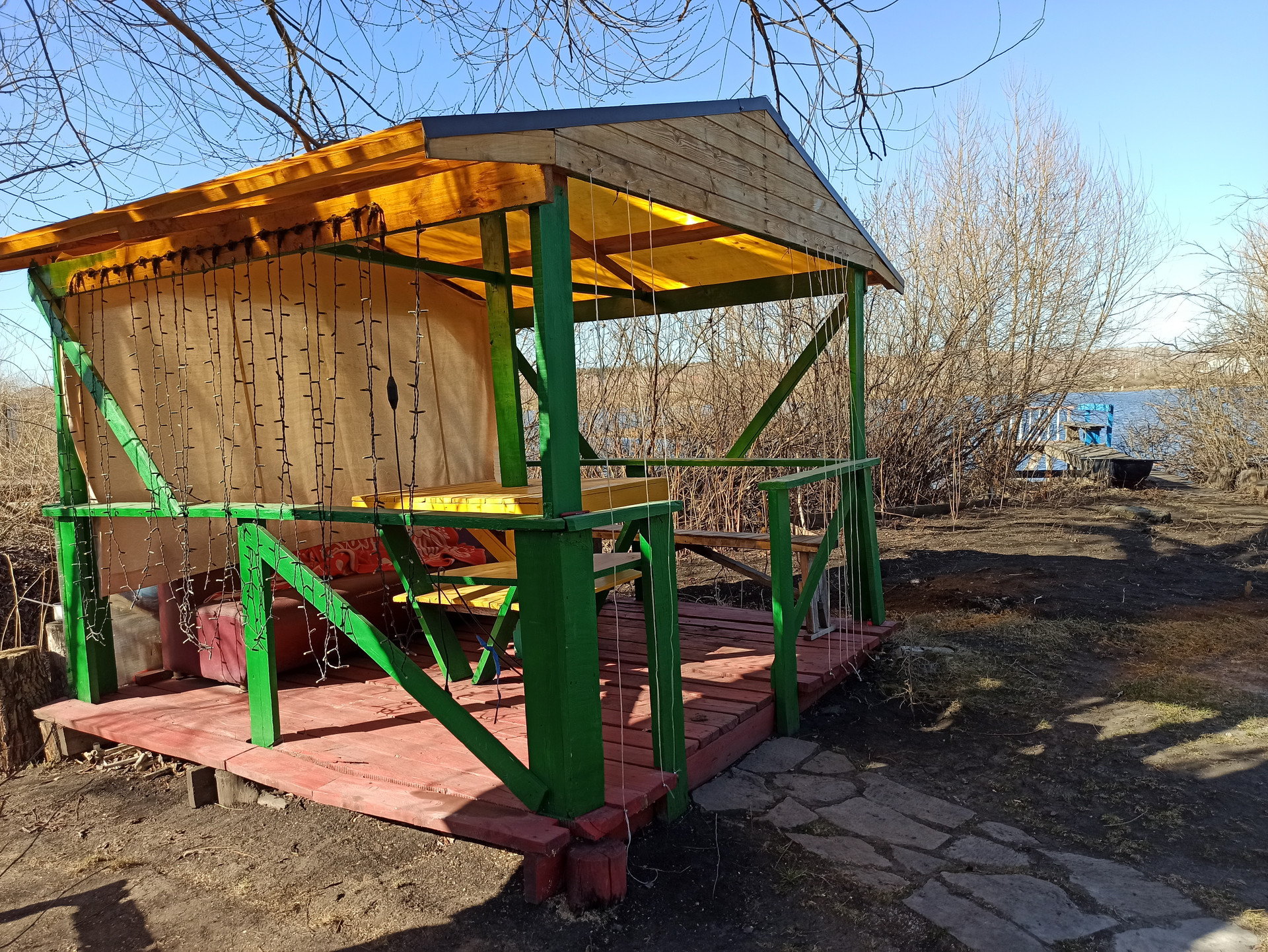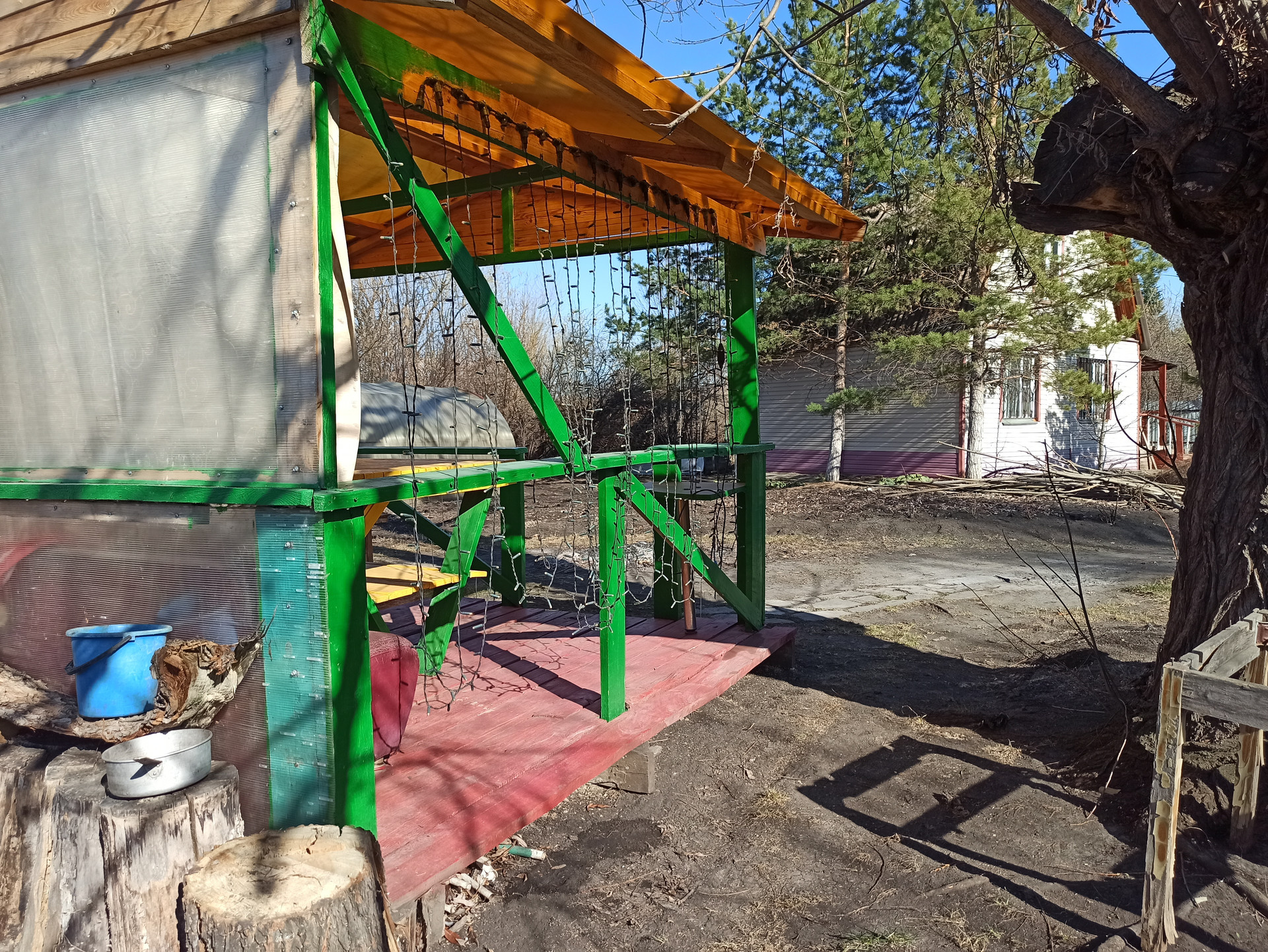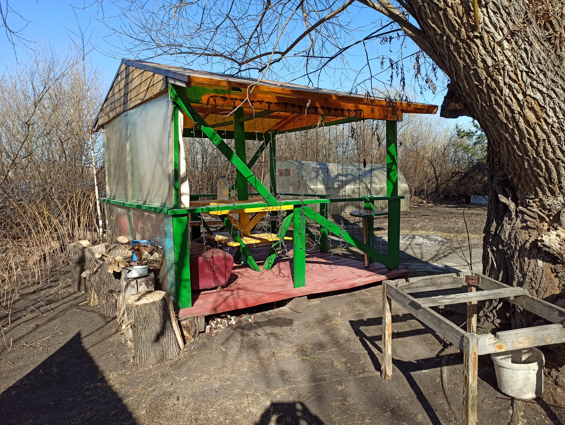 На участке есть действующая баня, беседка, теплица, различные посадки.