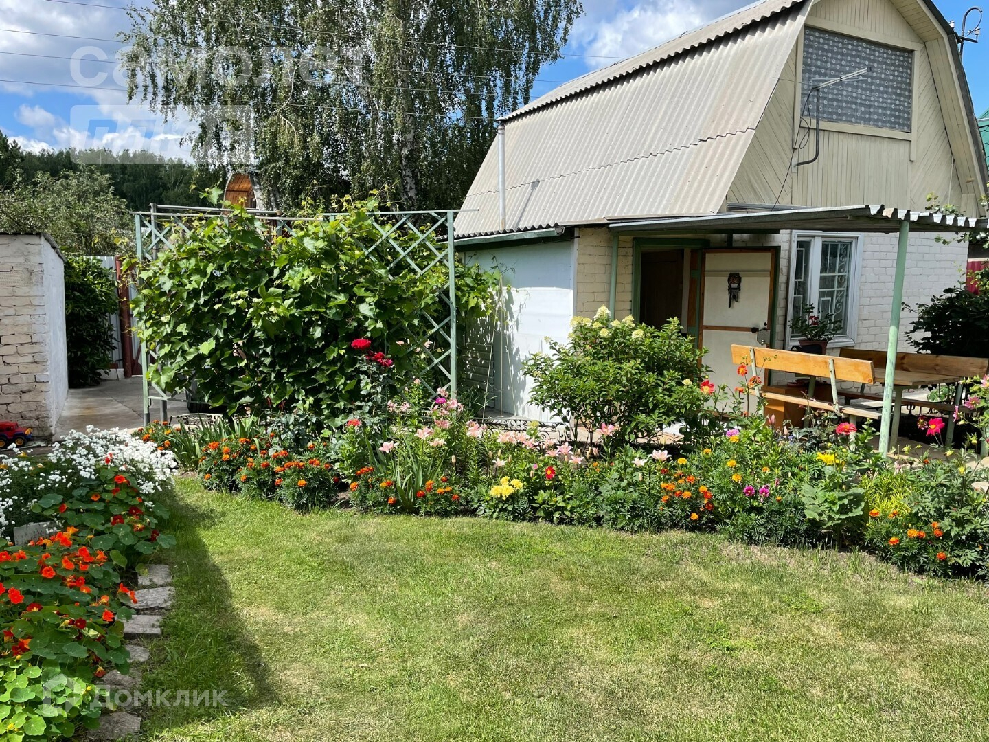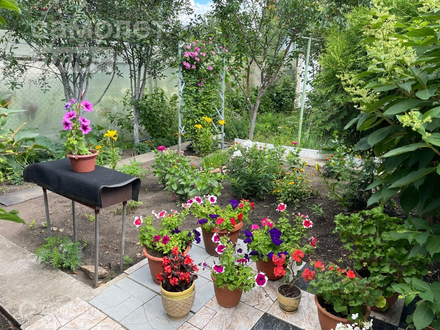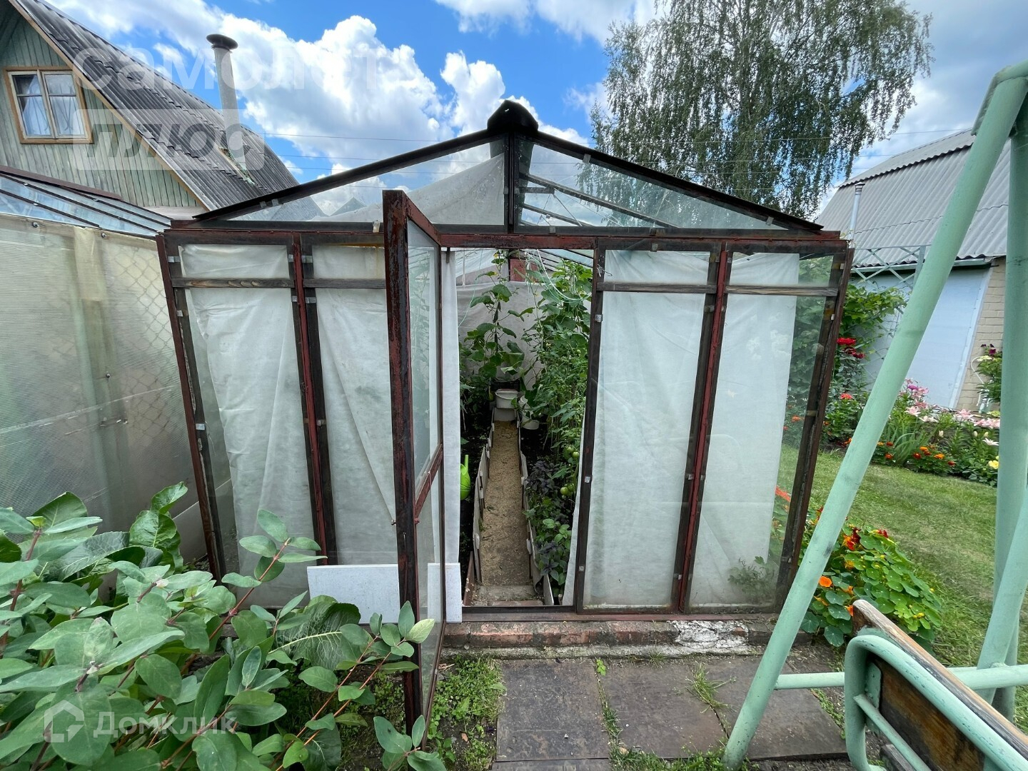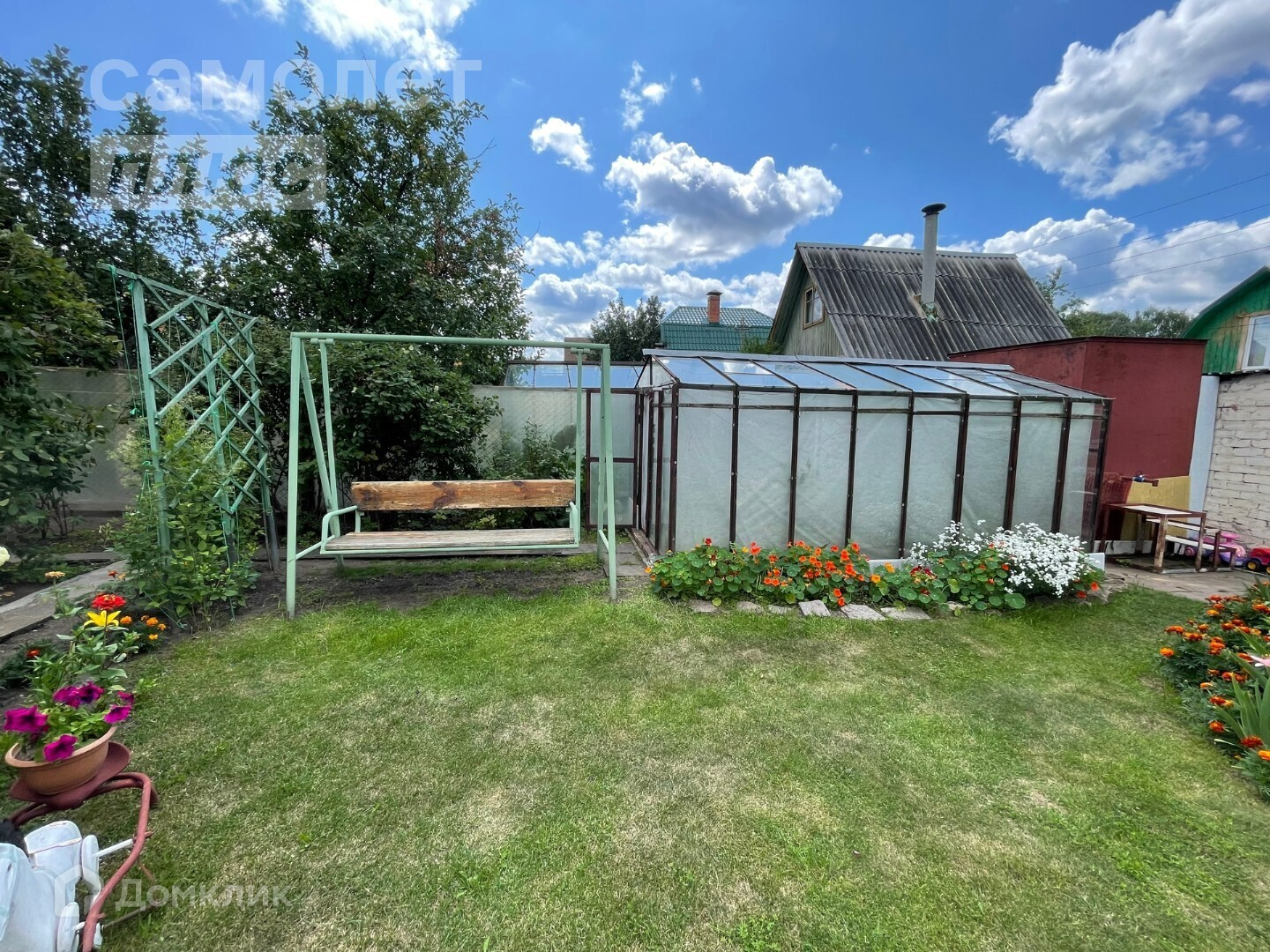 - очень ухожен и зонирован: есть место для посадок в открытый грунт, есть небольшая теплица, организовано место для отдыха с детьми, есть мангал и уютный уголок для дружеских и семейных посиделок.