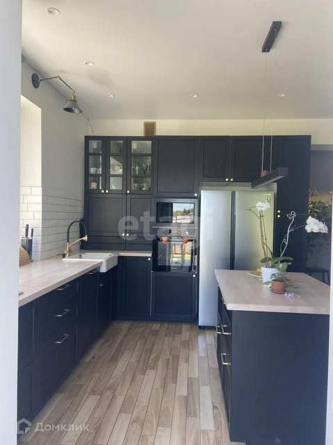 Планировка продумана до мелочей. На первом этаже располагается просторная кухня-гостиная с большим количеством естественного света, комната, санузел, котельная, коридор. Выход на веранду из кухни-гостиной. Организовано функциональное хранение. Холодильник, СВЧ и духовка , посудомоечная, газовая панель. Биокамин в зоне ТВ.