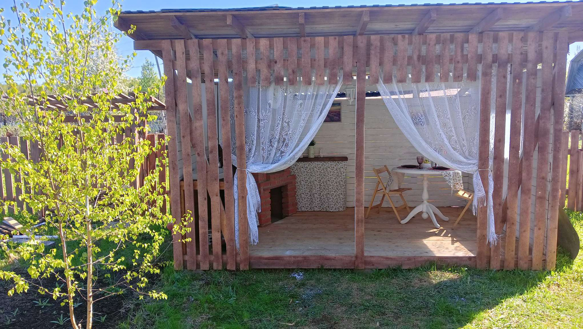 Беседка с мангальной зоной и уютным уголком