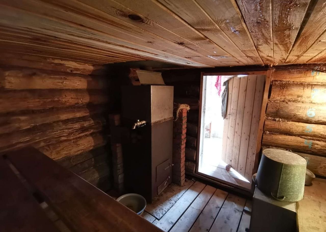 На первом этаже одна комната 18 кв.м, установлена печь. Имеется веранда 2,5×5 м.